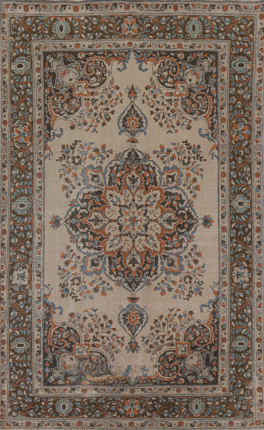 Vintage Distressed Tabriz Persian Area Rug 6x9