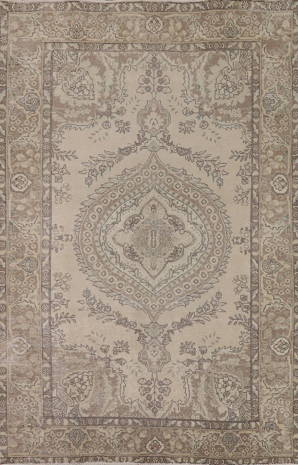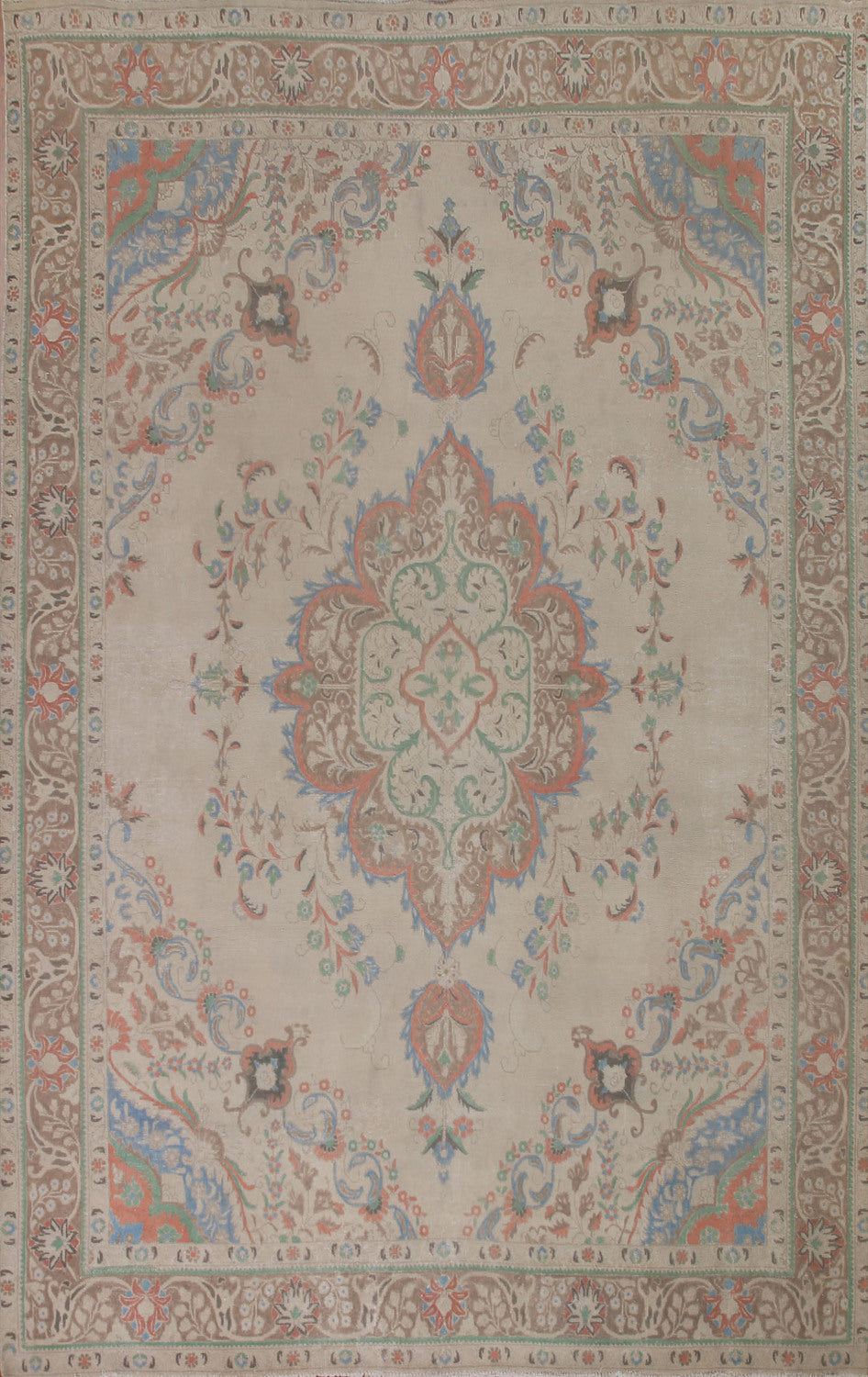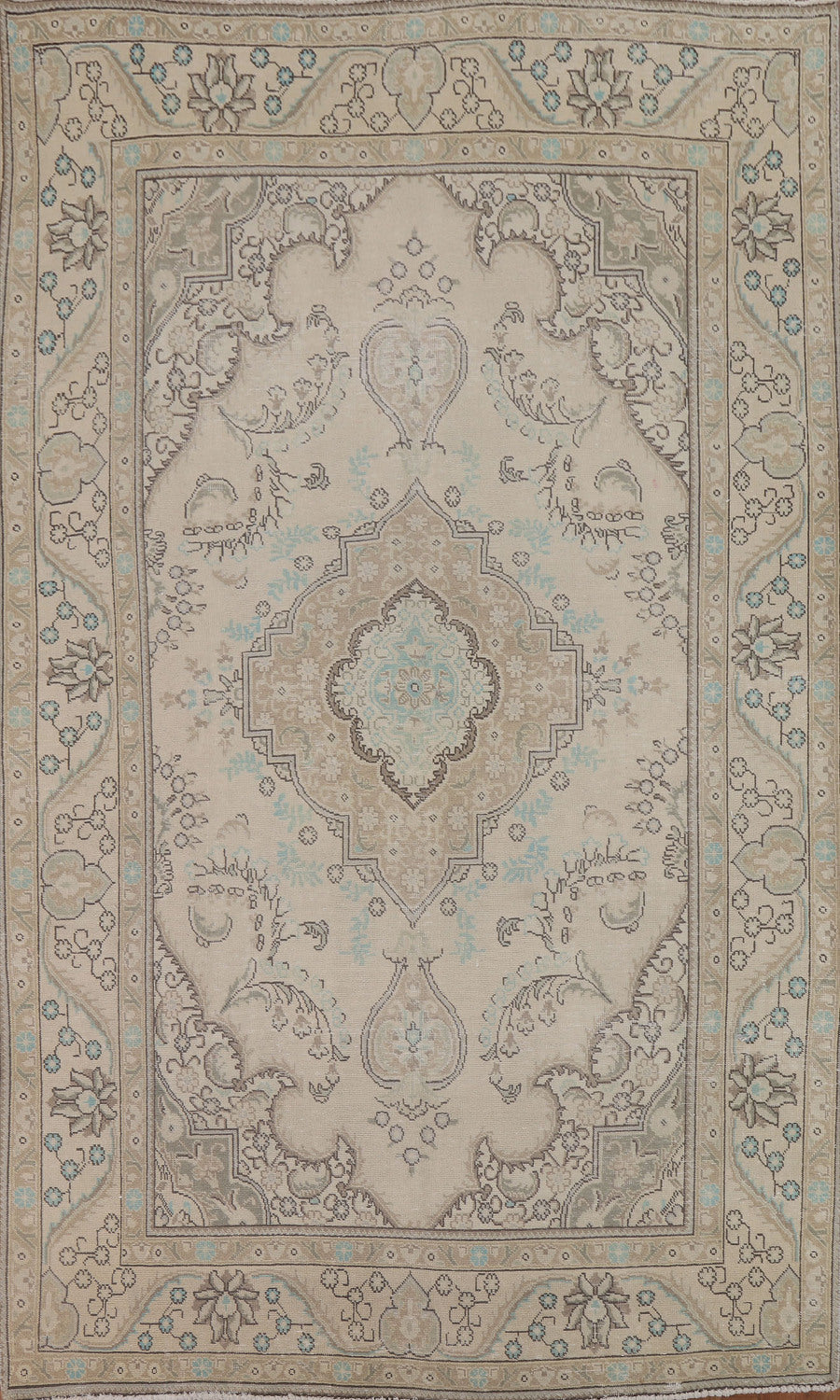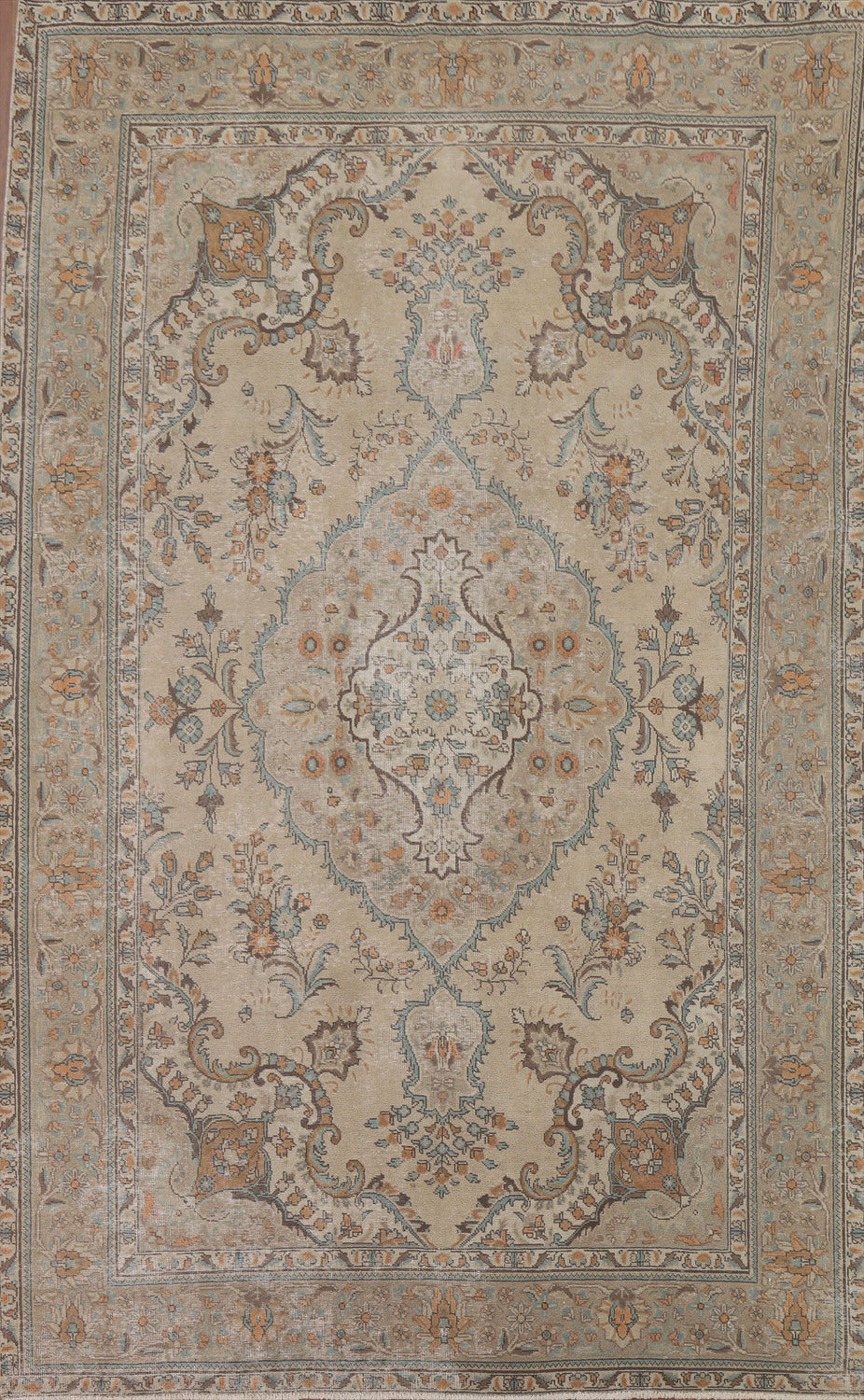 Vintage Ivory Tabriz Persian Area Rug 7x9