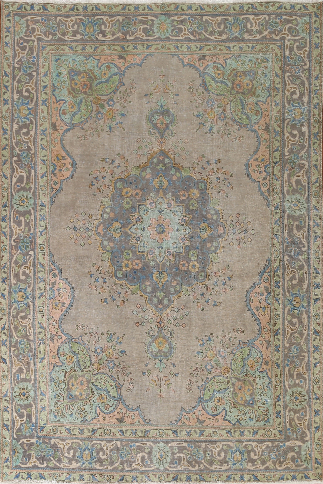 Distressed Muted Tabriz Persian Area Rug 7x10