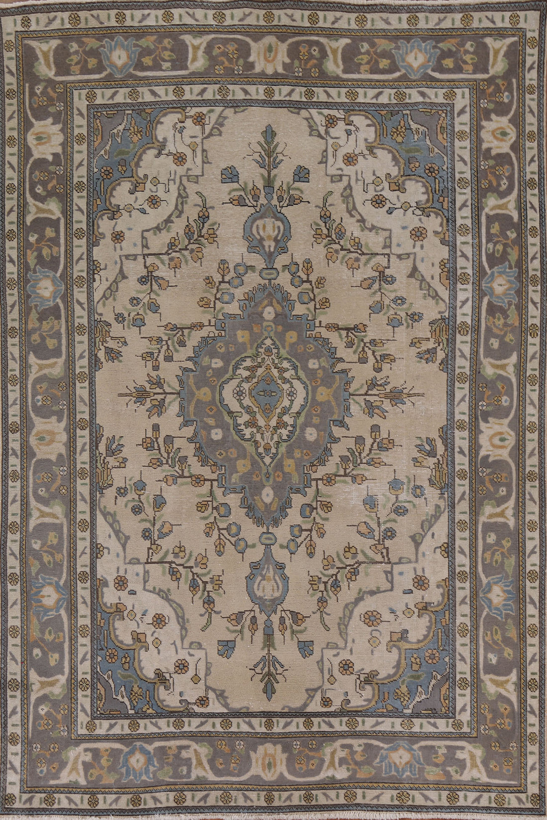 Muted Vintage Tabriz Persian Area Rug 6x10