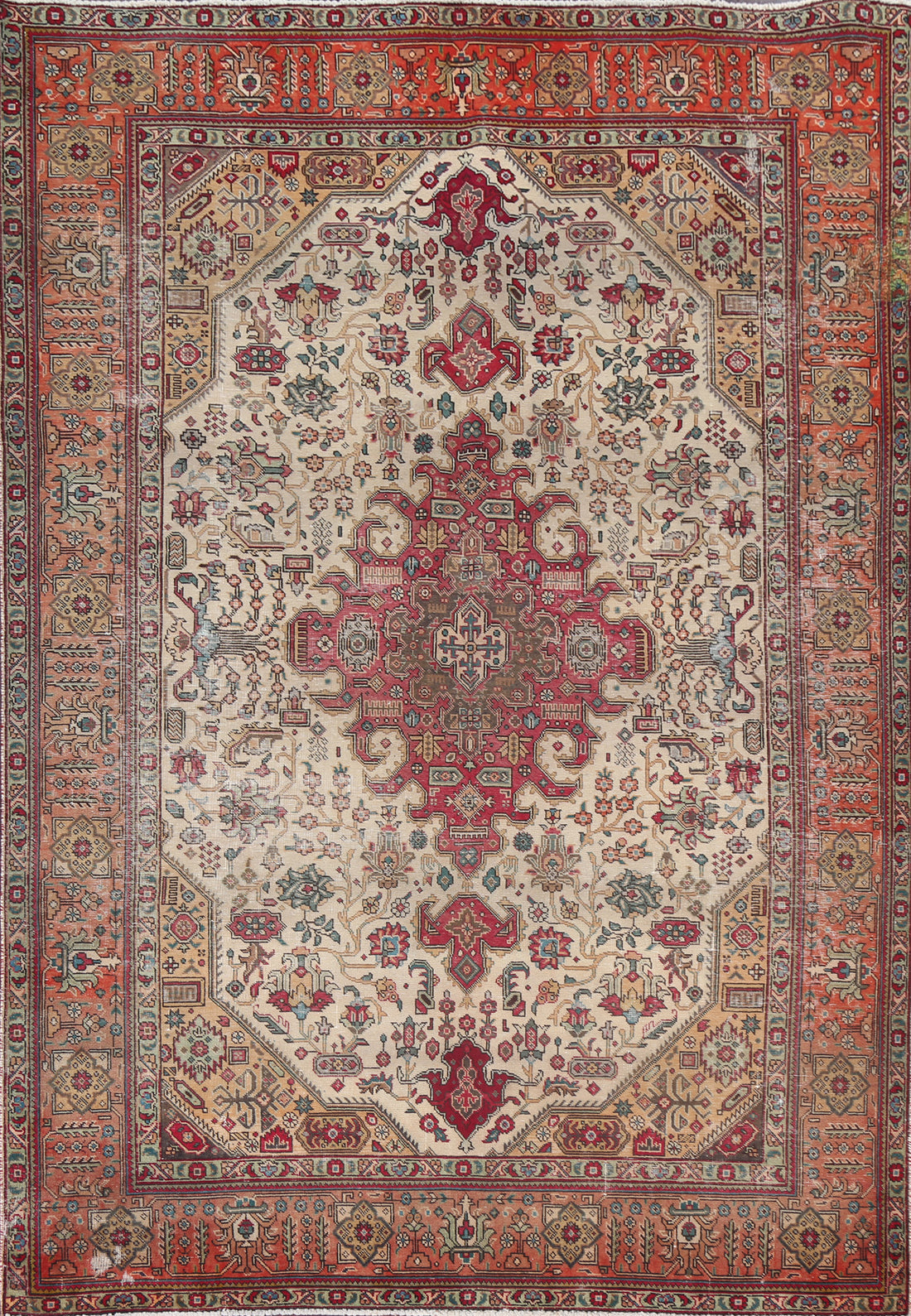 Vintage Handmade Tabriz Persian Area Rug 7x9