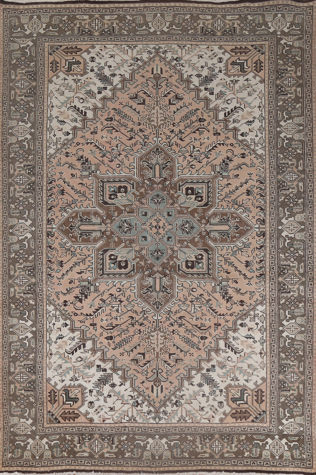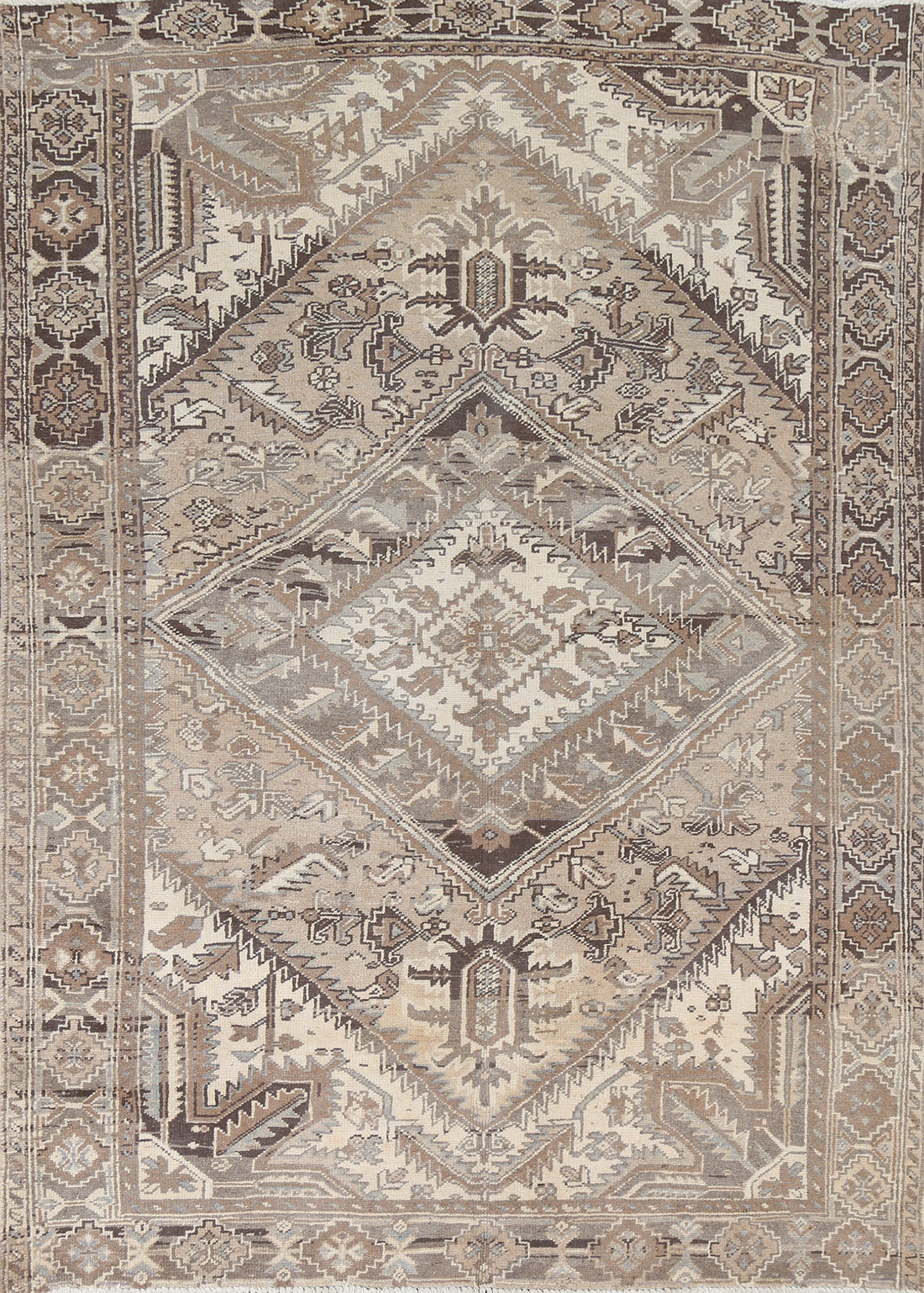 Vintage Geometric Distressed Heriz Persian Rug 7x9