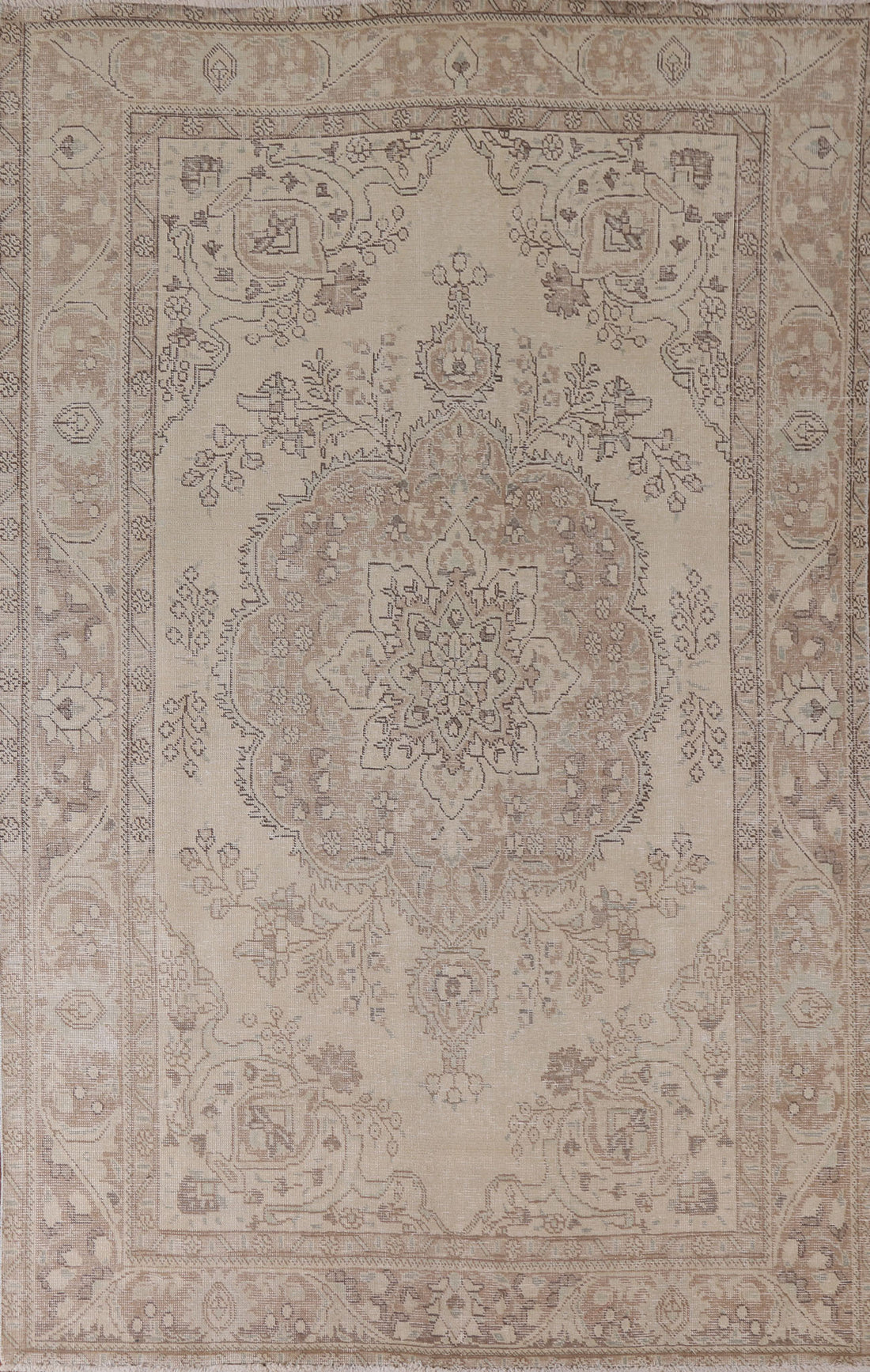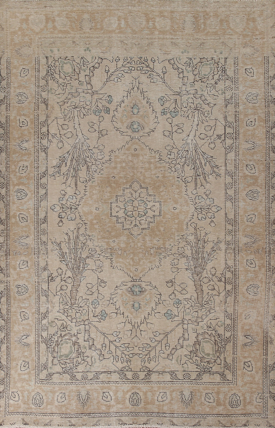 Muted Distressed Tabriz Persian Area Rug 6x10