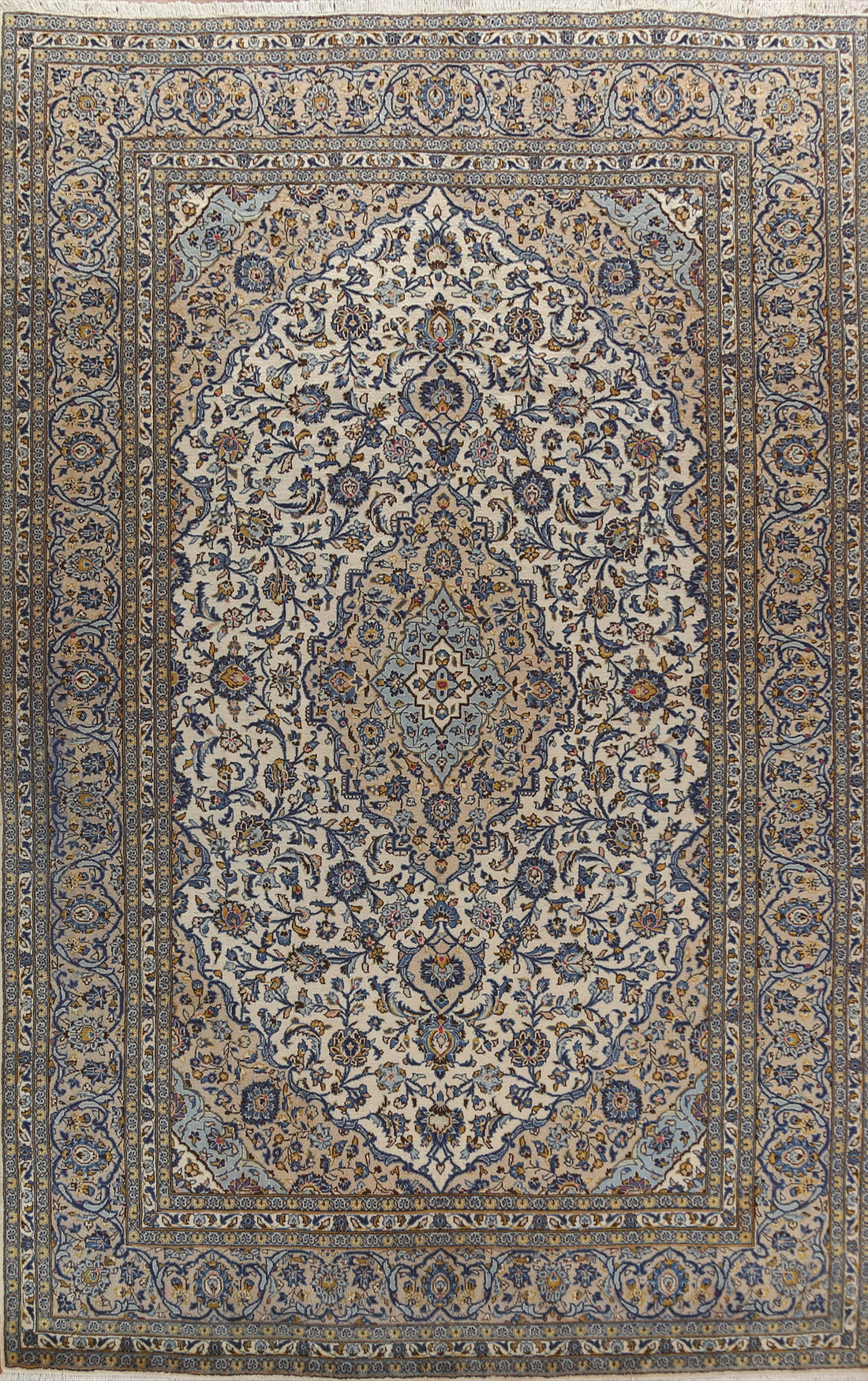 Vintage Ivory Kashan Persian Area Rug 8x12