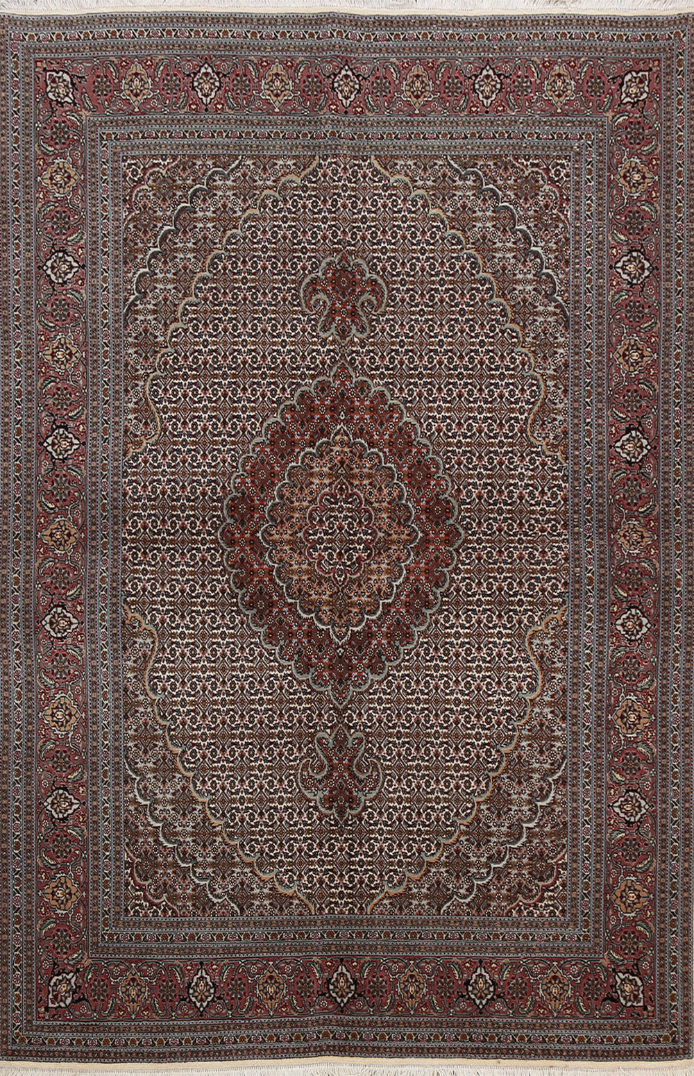 Vegetable Dye Wool/ Silk Tabriz Mahi Persian Area Rug 5x7