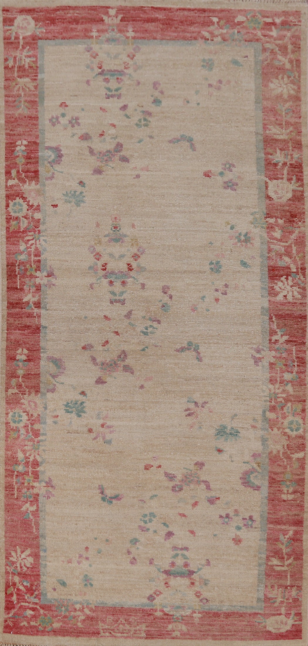 Vegetable Dye Wool Oushak Turkish Runner Rug 3x8