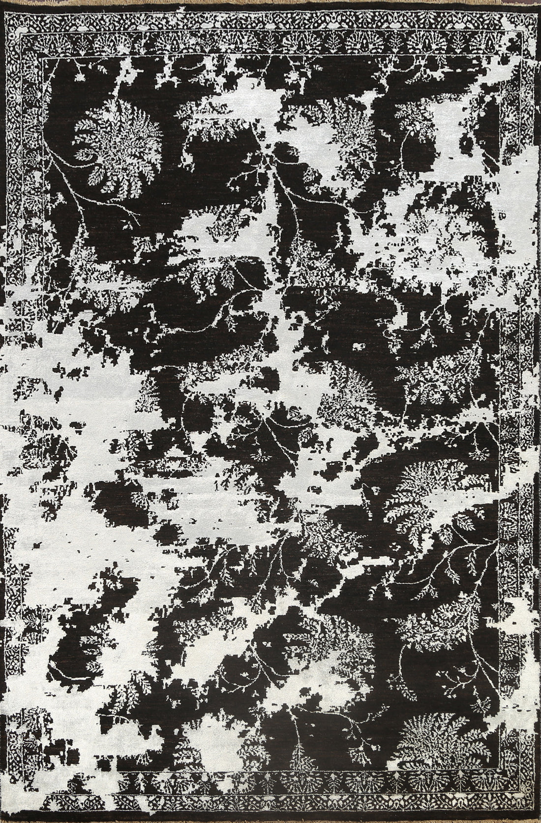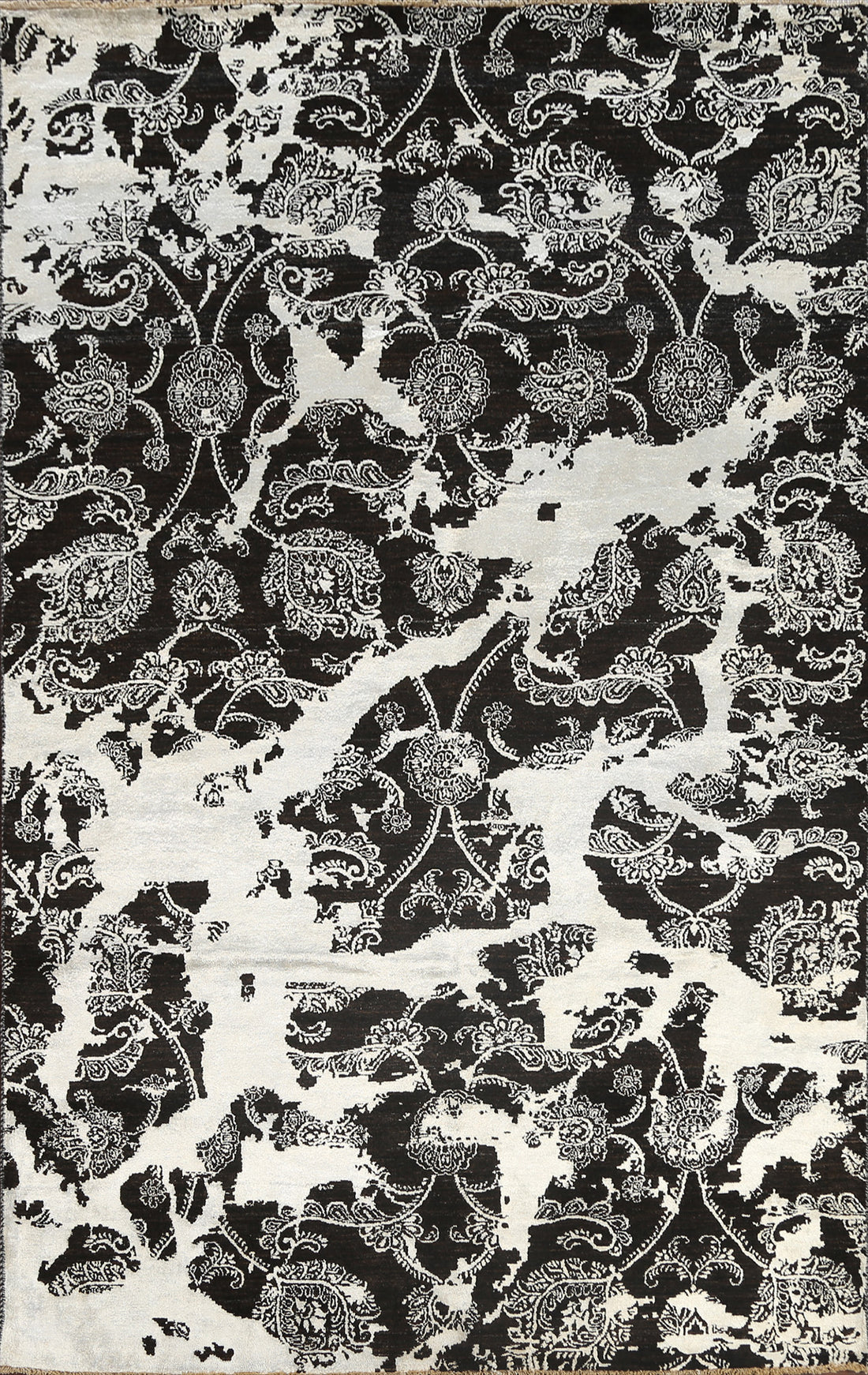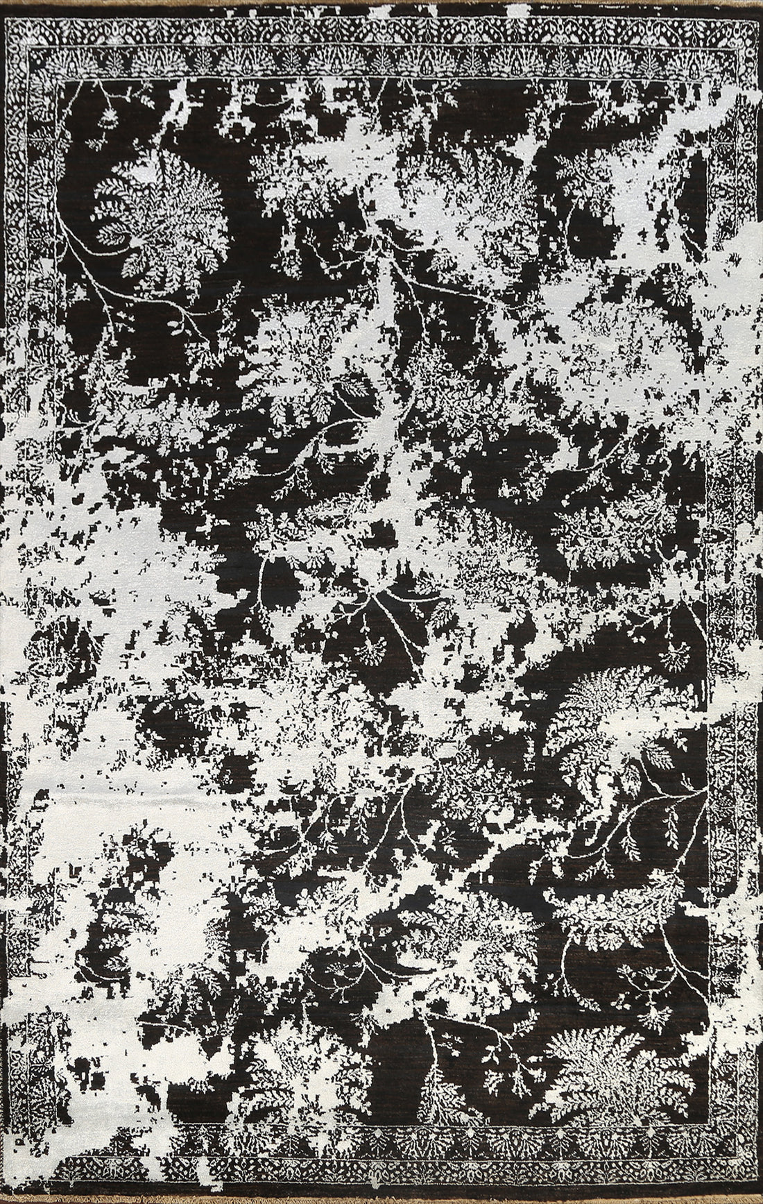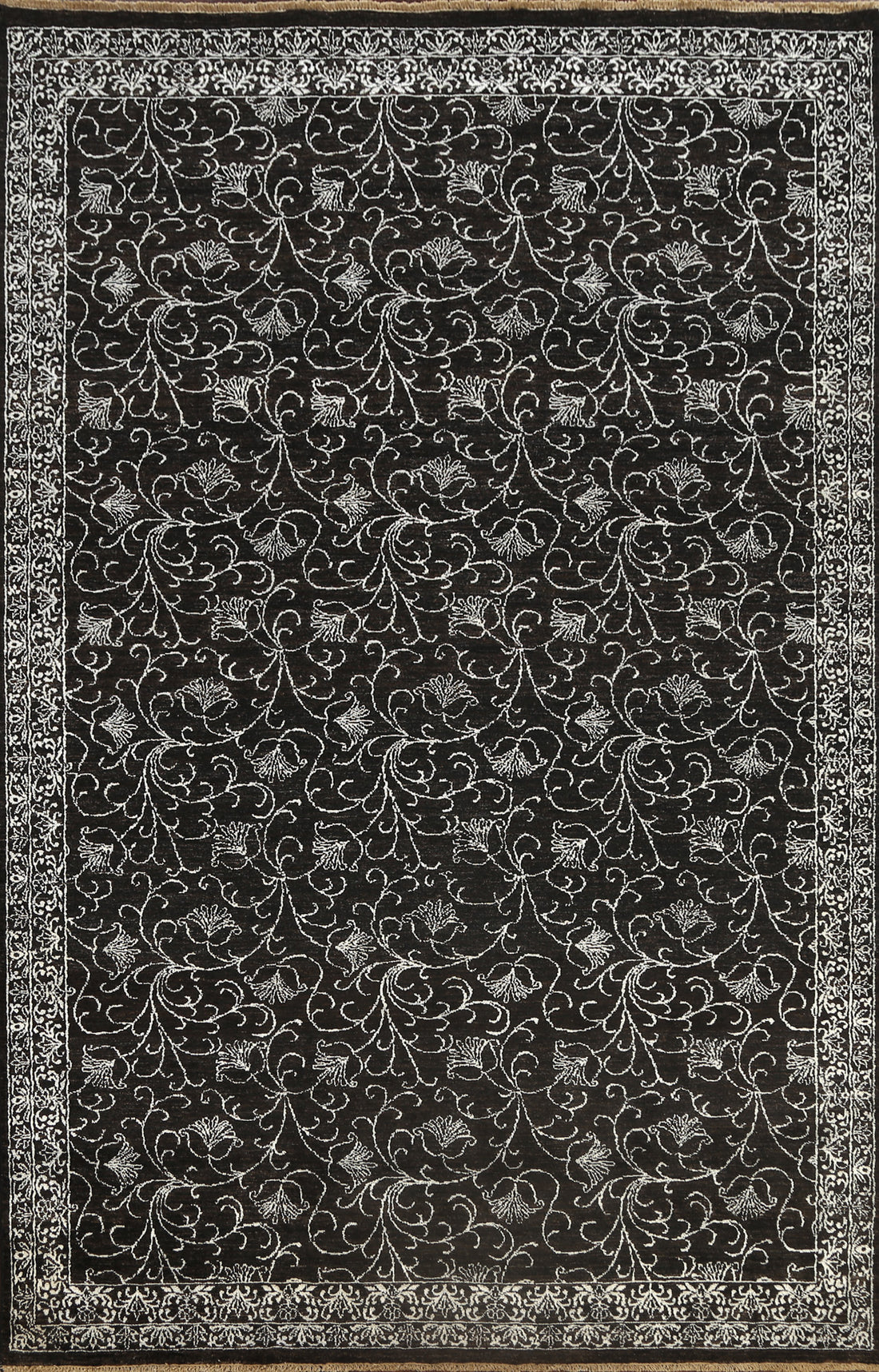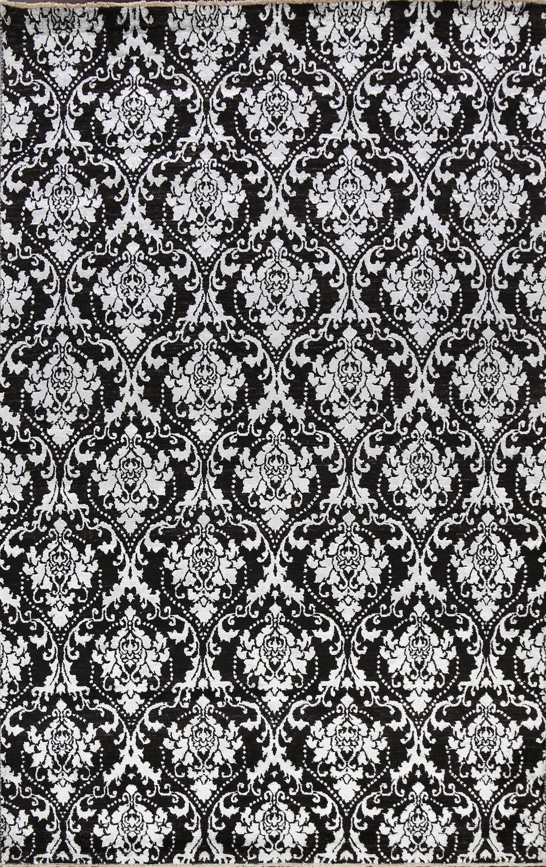 Black/ Silver Floral Versace Oriental Area Rug 6x9