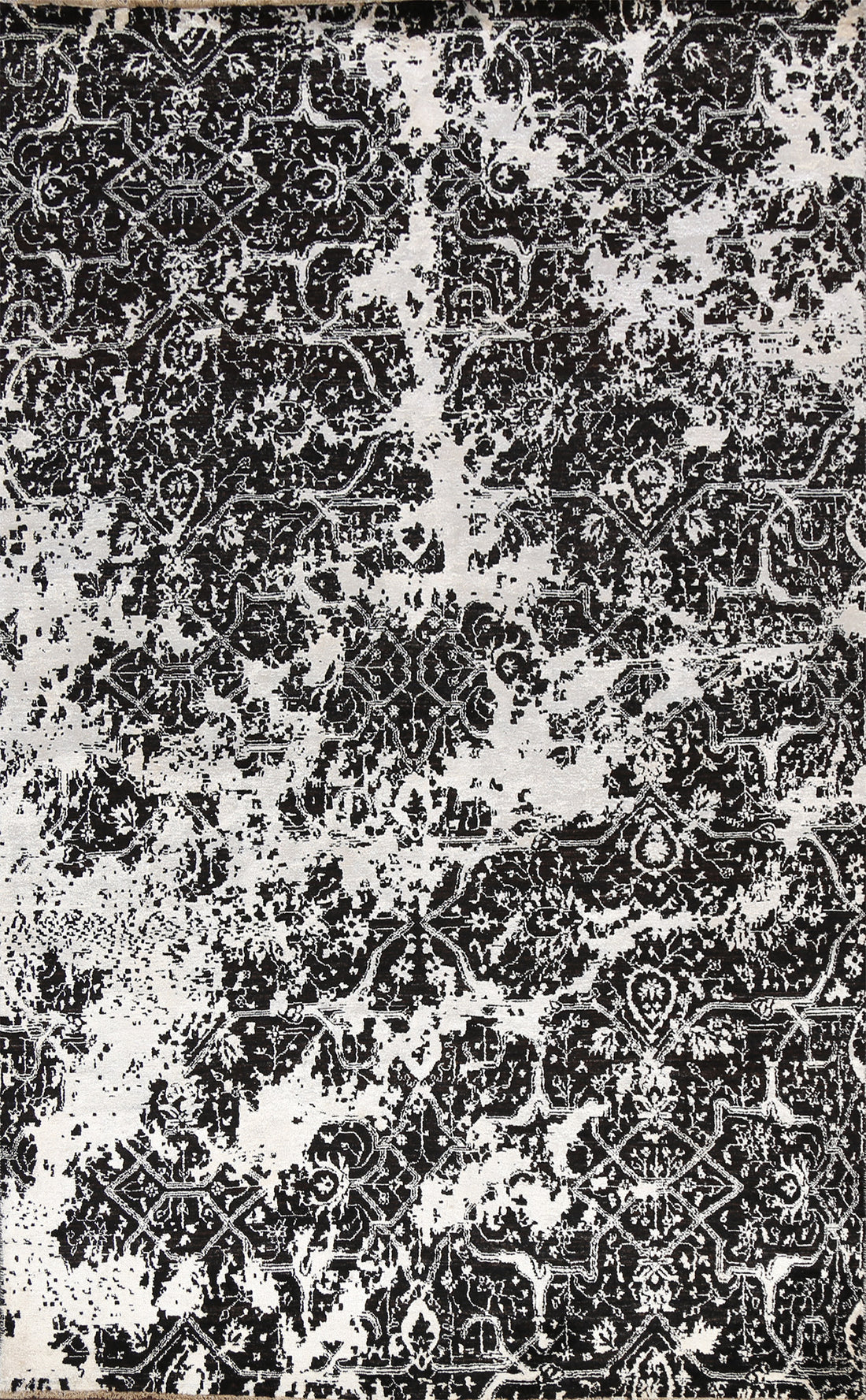 Vegetable Dye Distressed Black/ Silver Abstract Oriental Area Rug 6x9