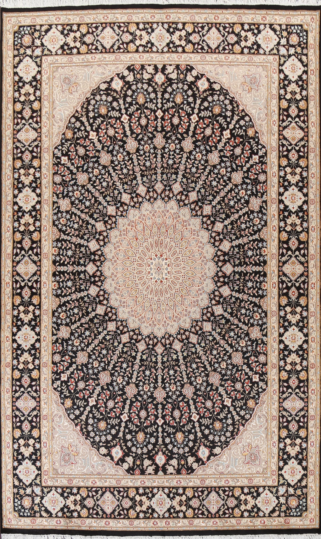 Transitional Black Kashan Oriental Hand-Knotted Area Rug Wool 6x9