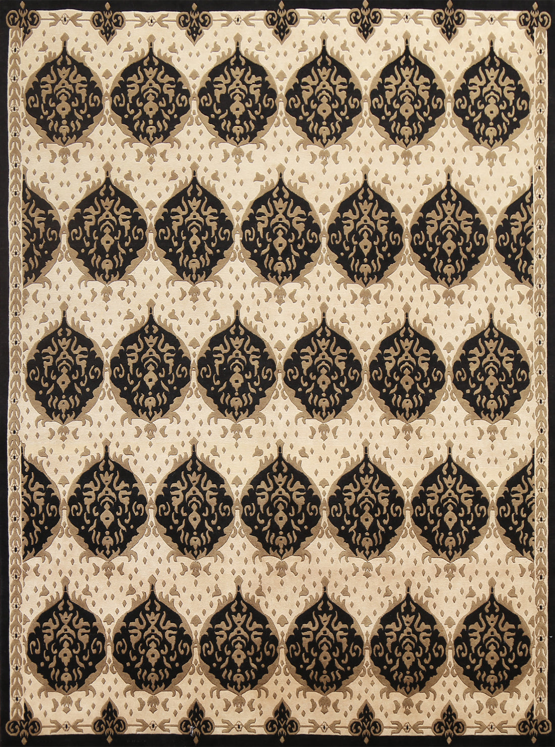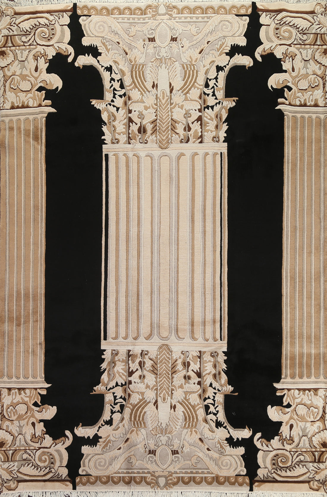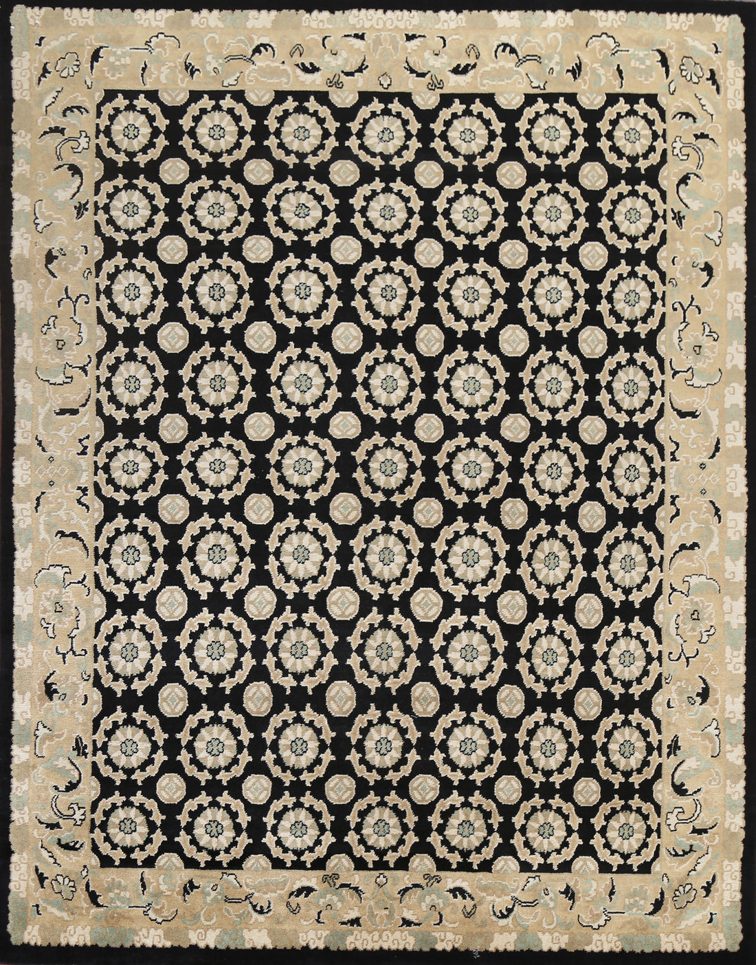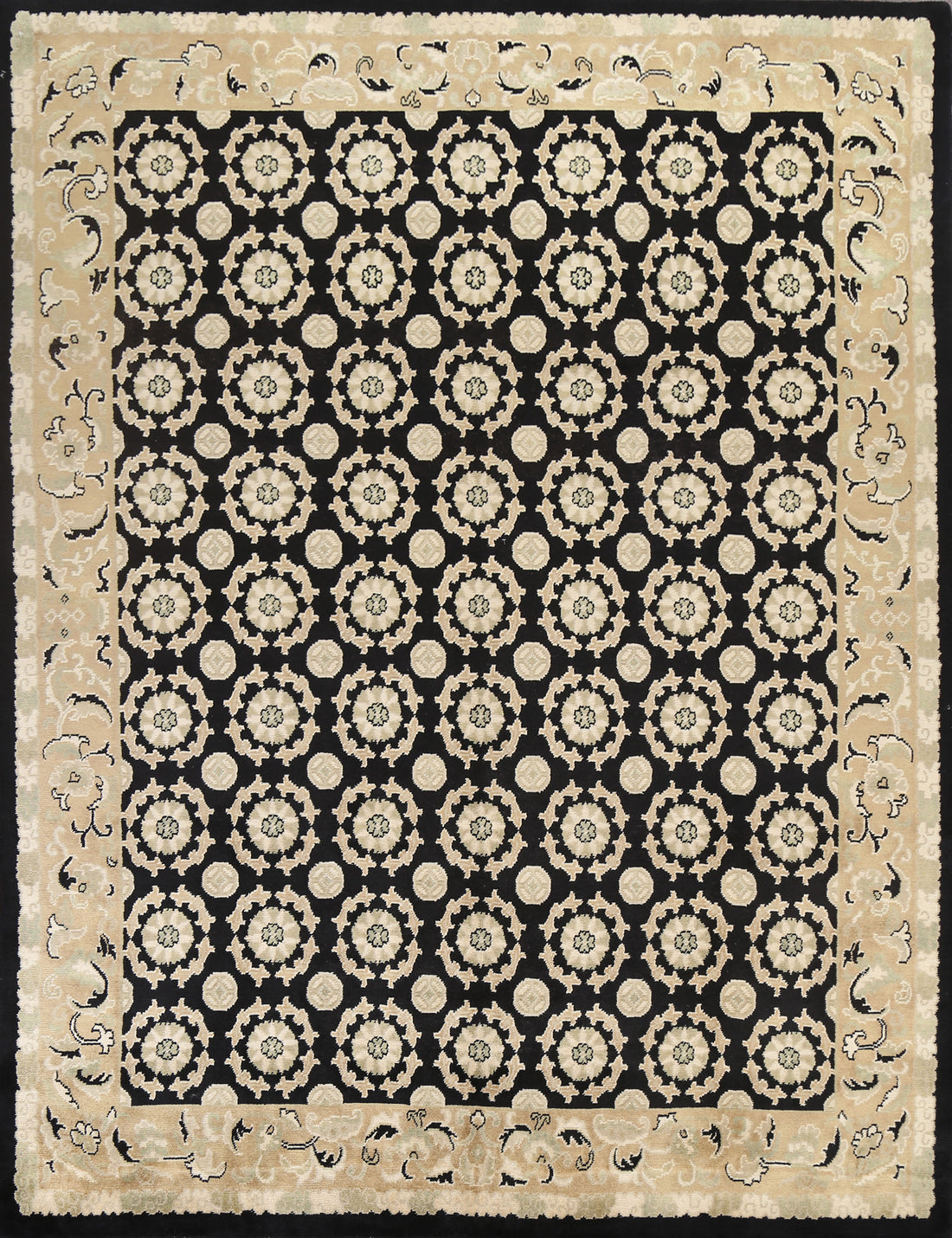 Vegetable Dye Black & Beige Nepalese Oriental Rug 8x10