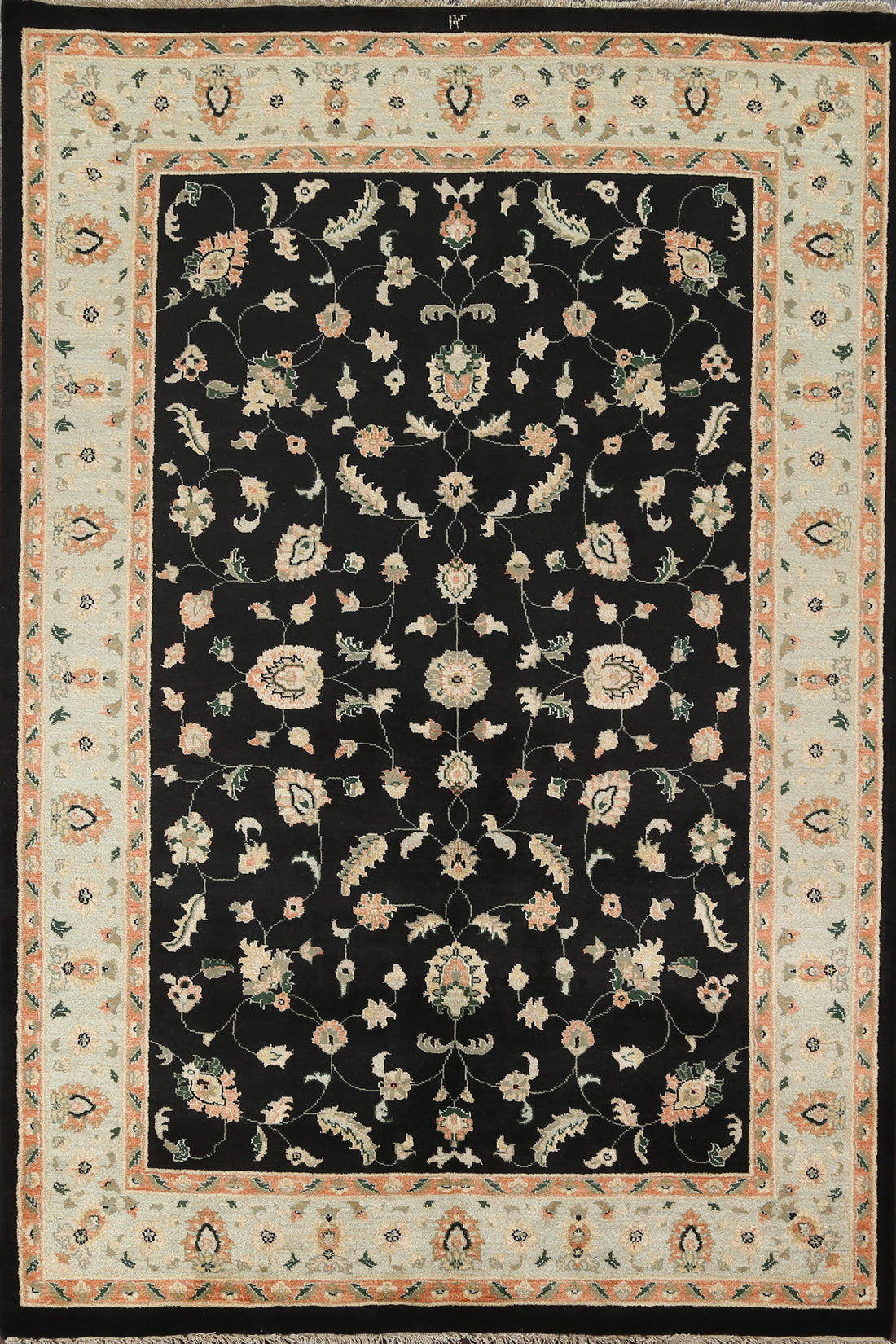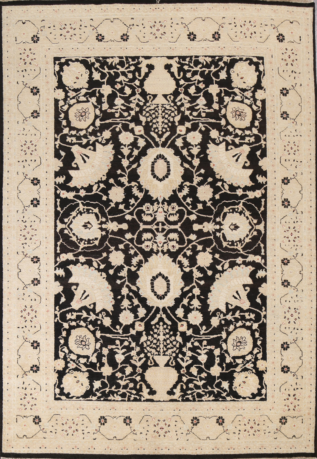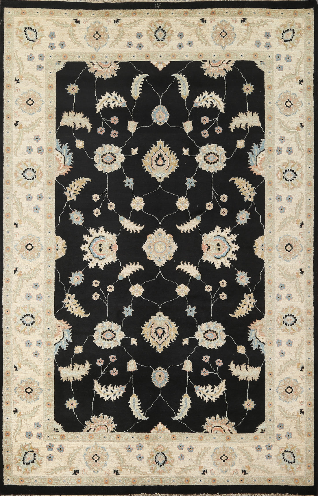 Black Oushak Chobi Handmade Wool Rug 8x10