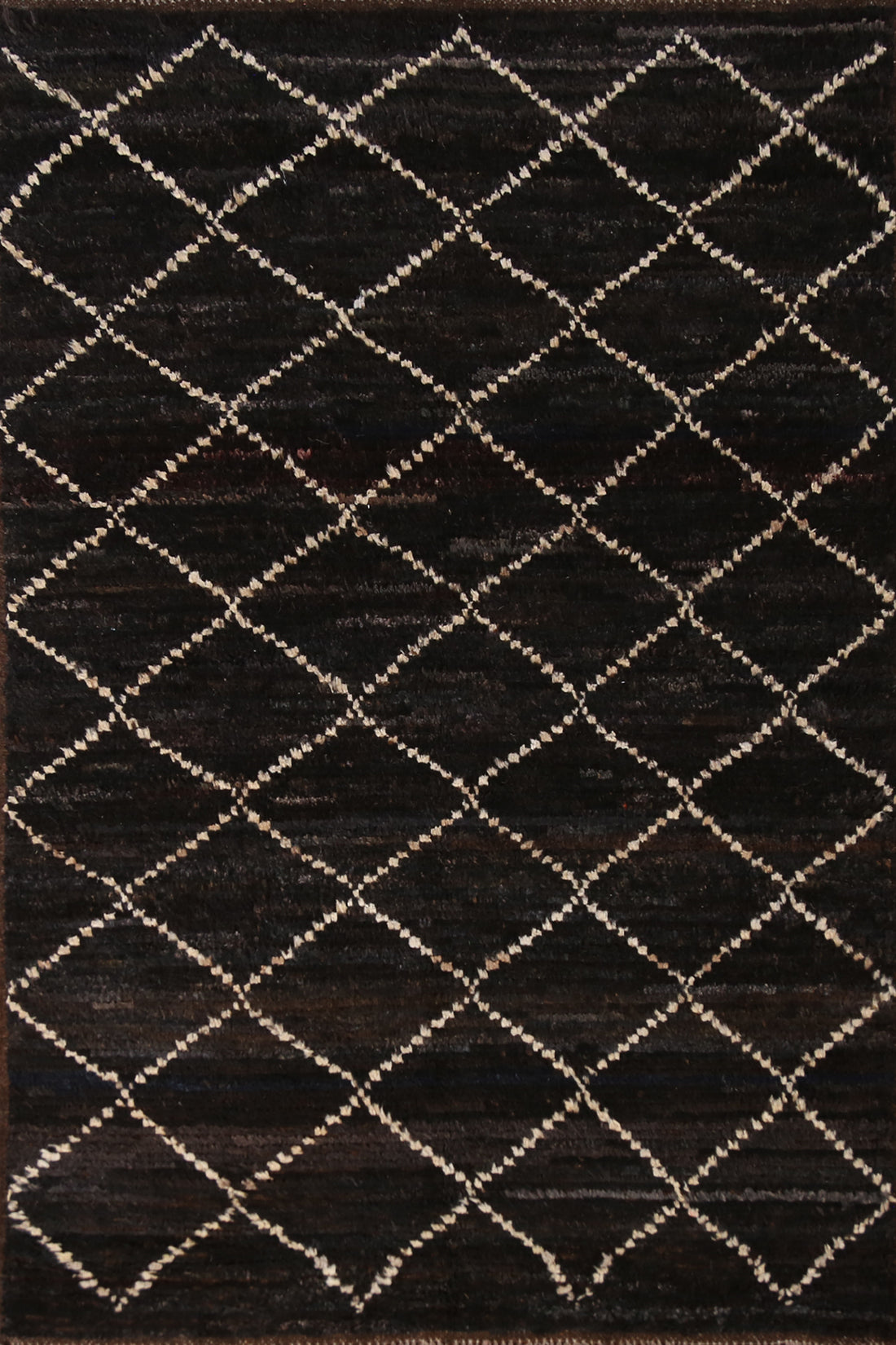 Black Trellis Wool Moroccan Oriental Rug 4x6