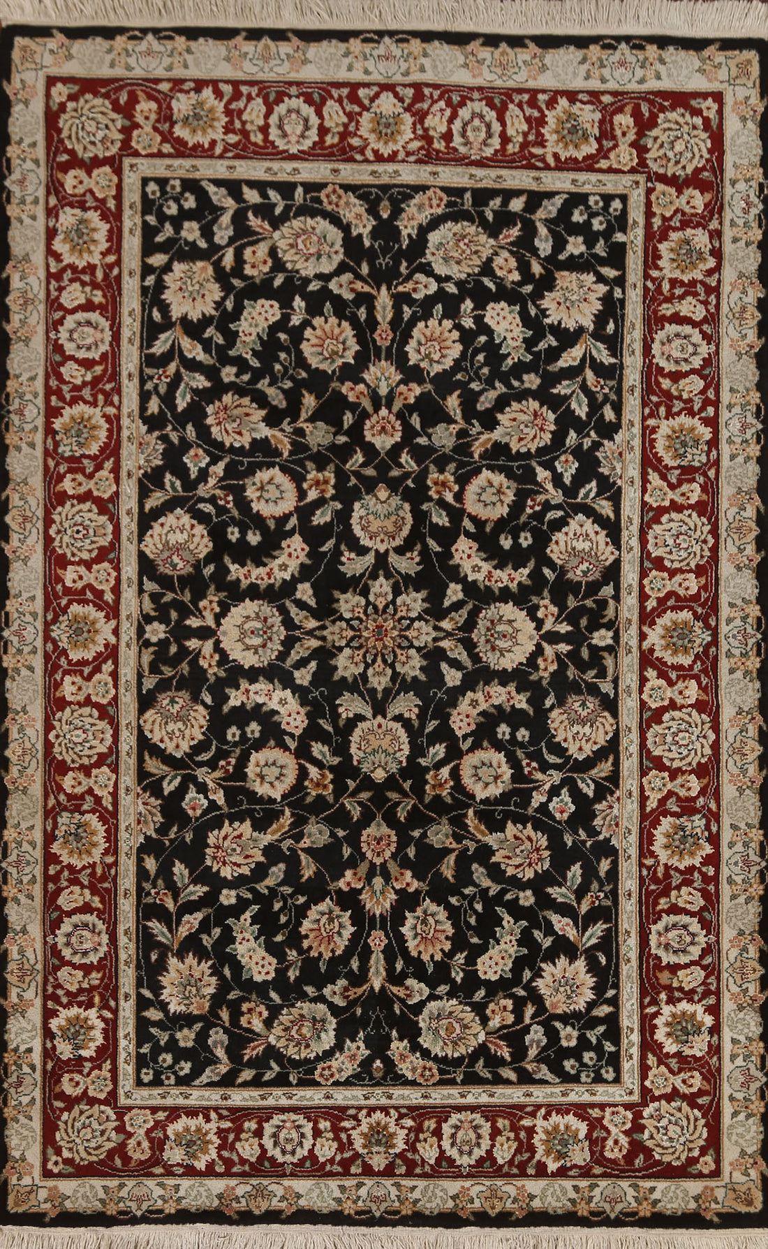 Vegetable Dye Black Silk Floral Tabriz Persian Rug 5x7