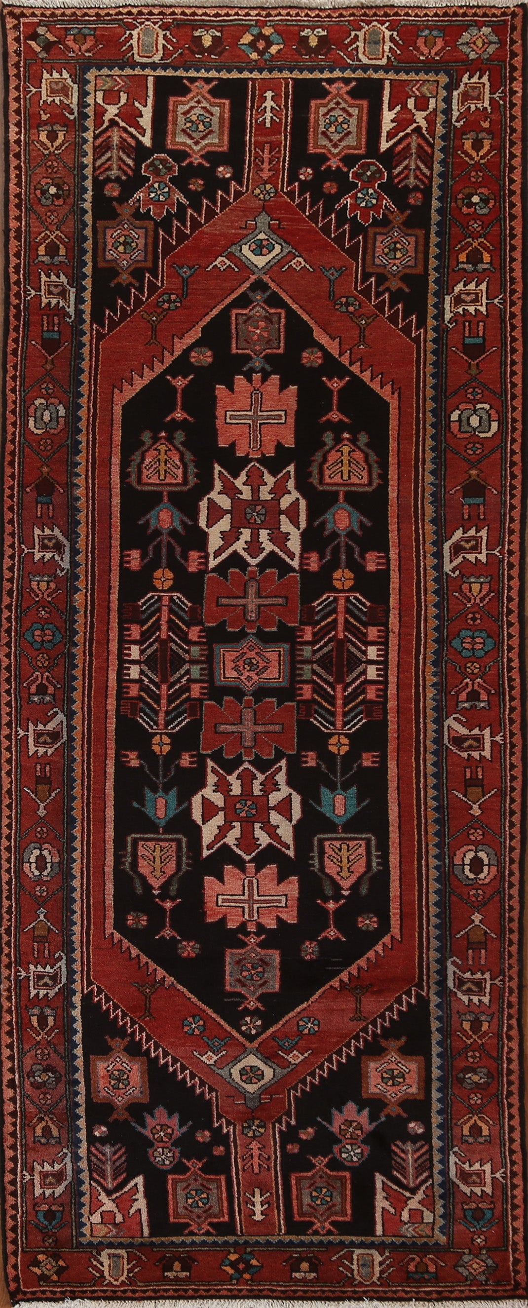 Tribal Geometric Hamedan Persian Runner Rug 4x10