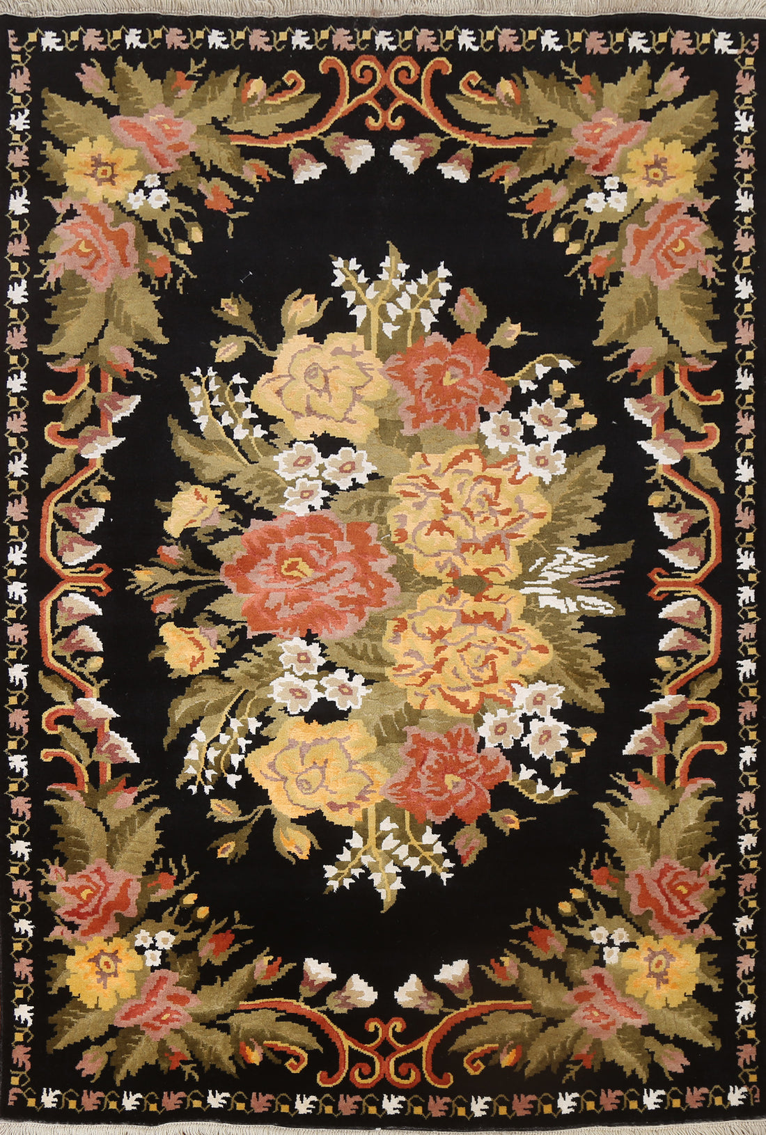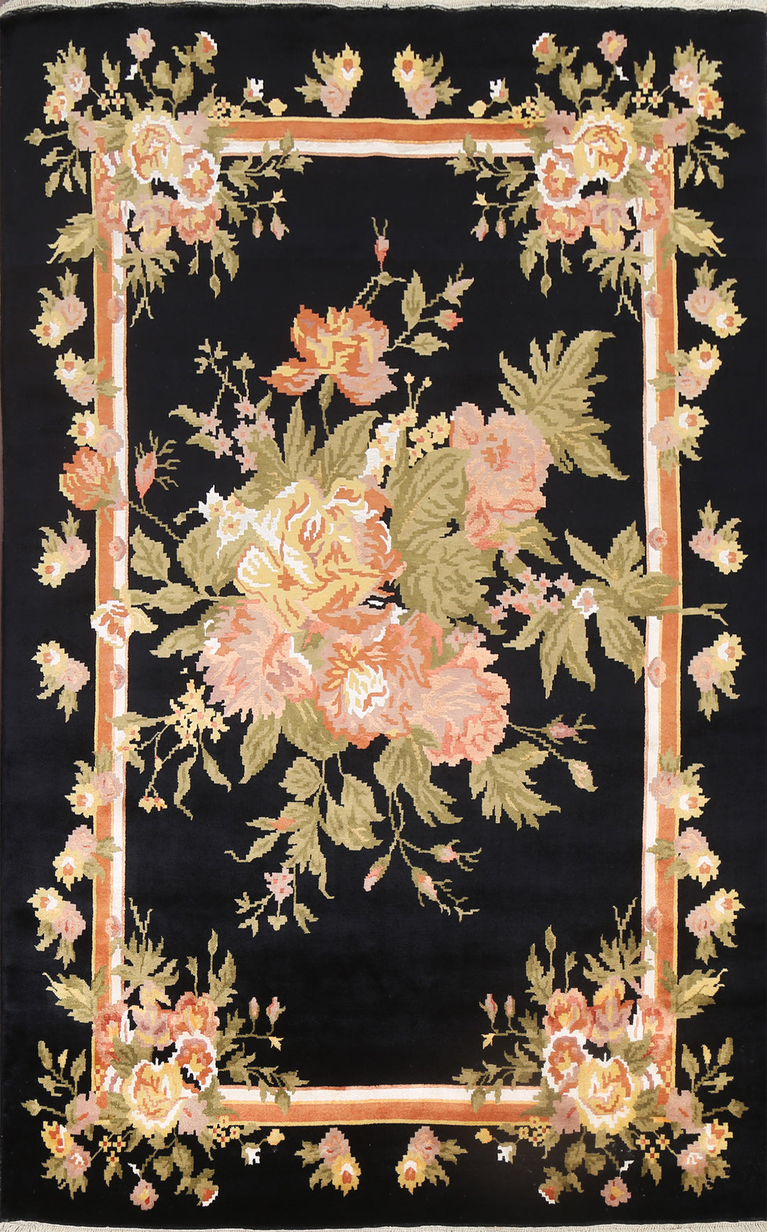Vegetable Dye Black Aubusson Oriental Wool Rug 6x8