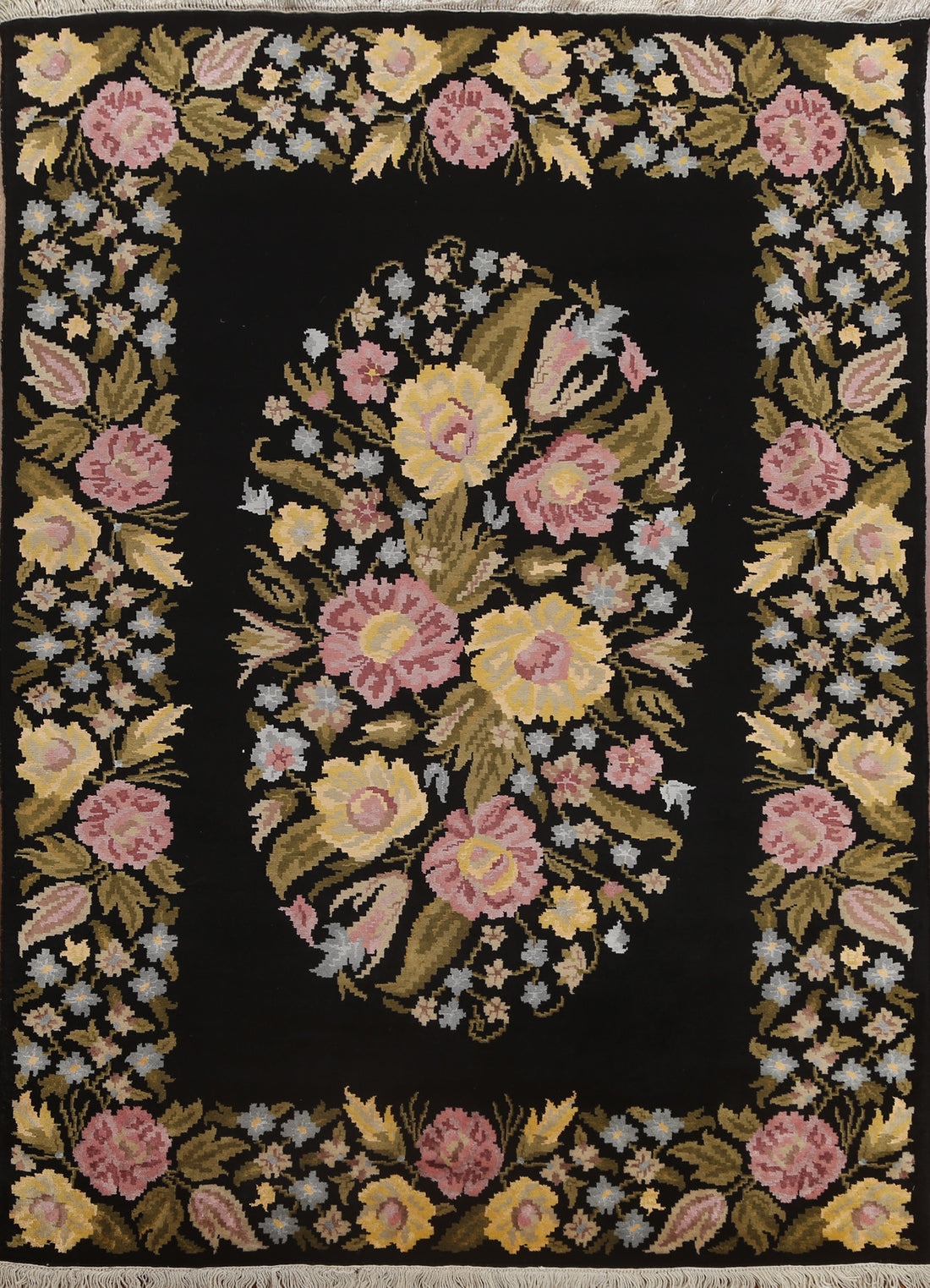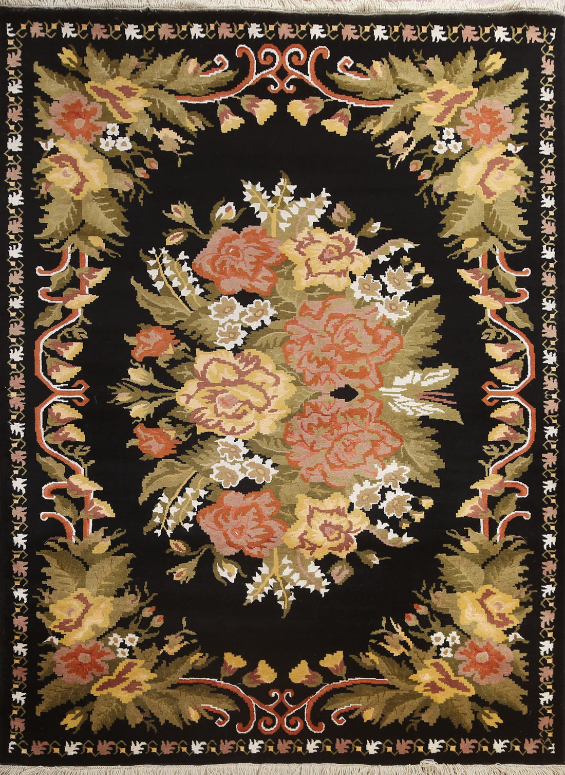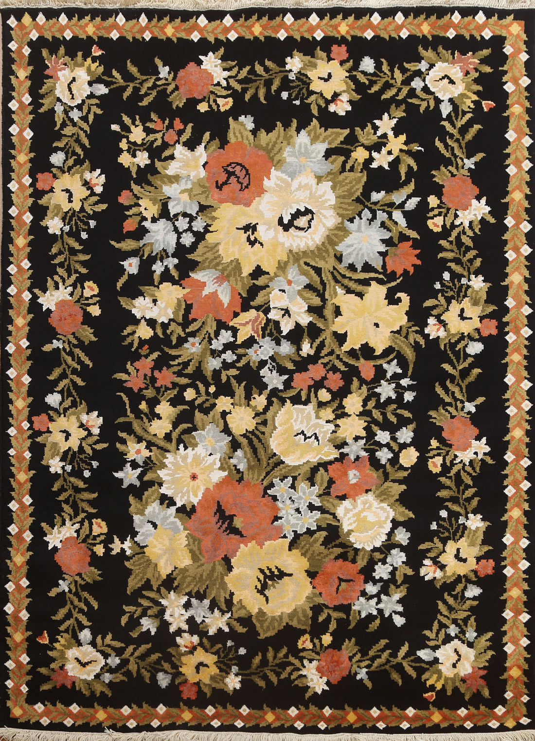 Vegetable Dye Black Aubusson Oriental Area Rug 7x10