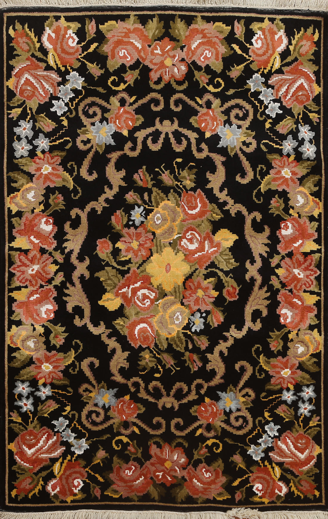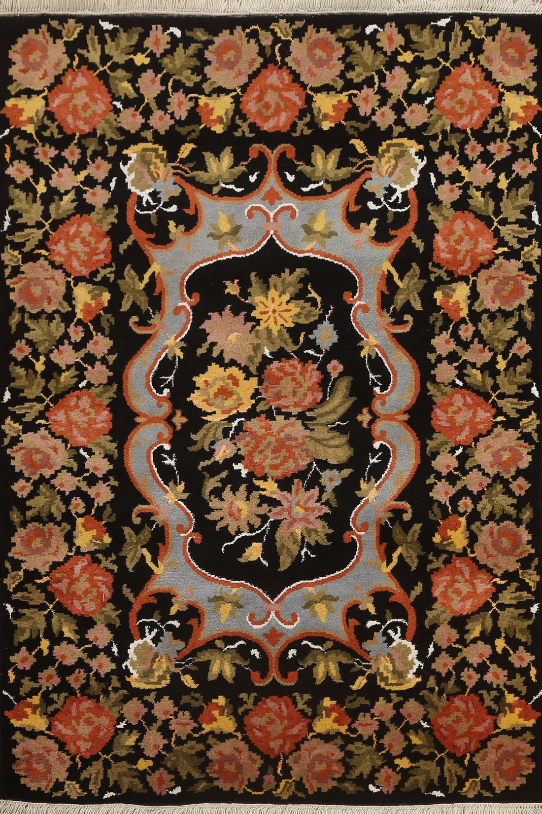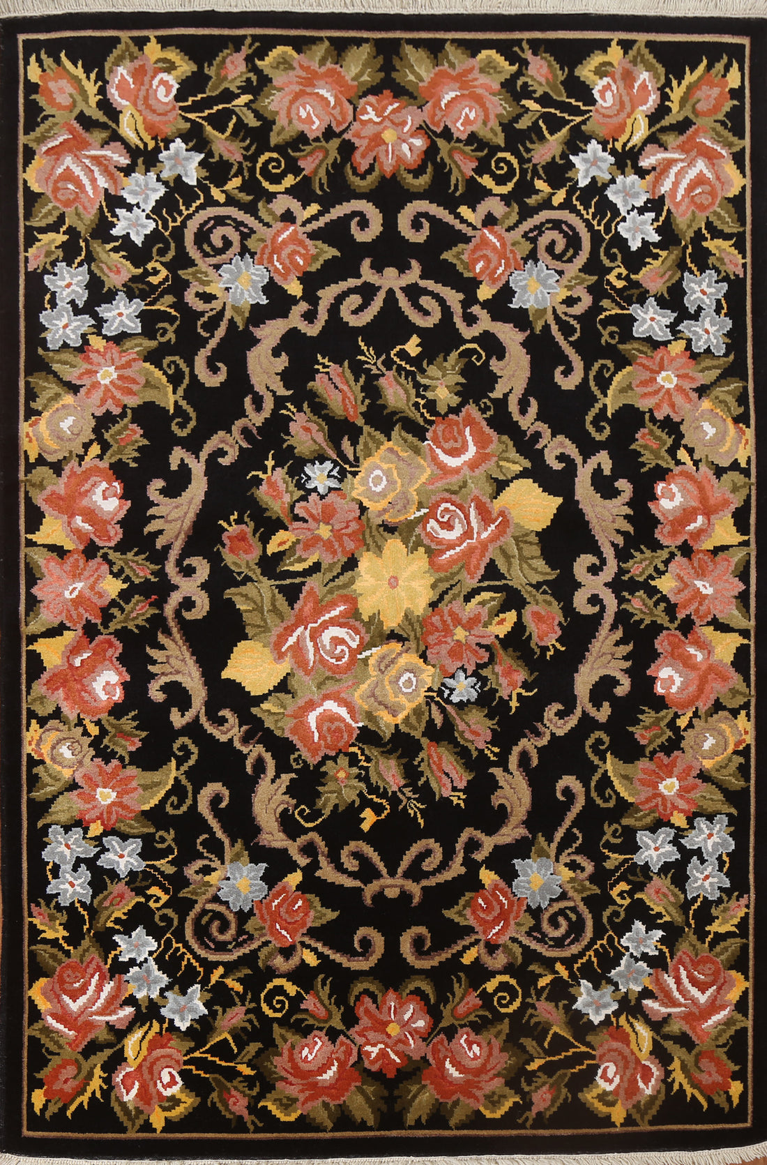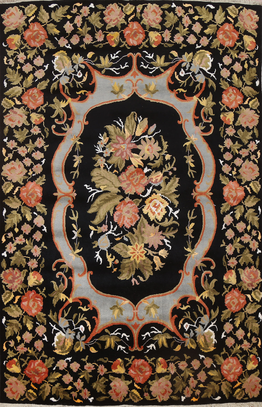 Vegetable Dye Floral Aubusson Oriental Area Rug 5x8