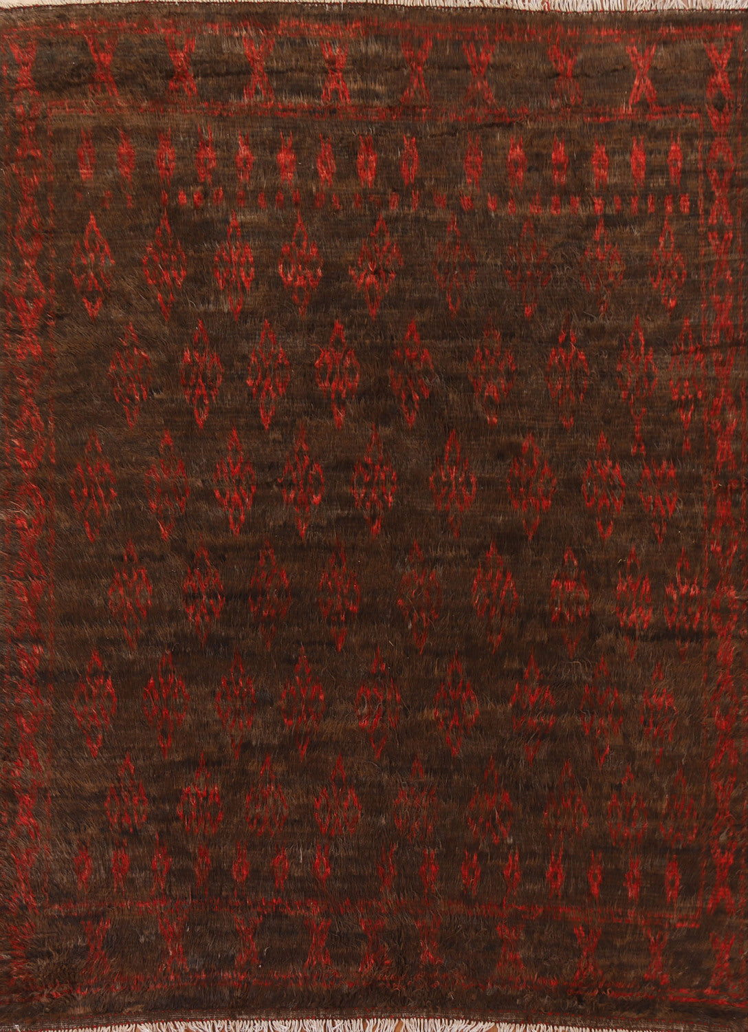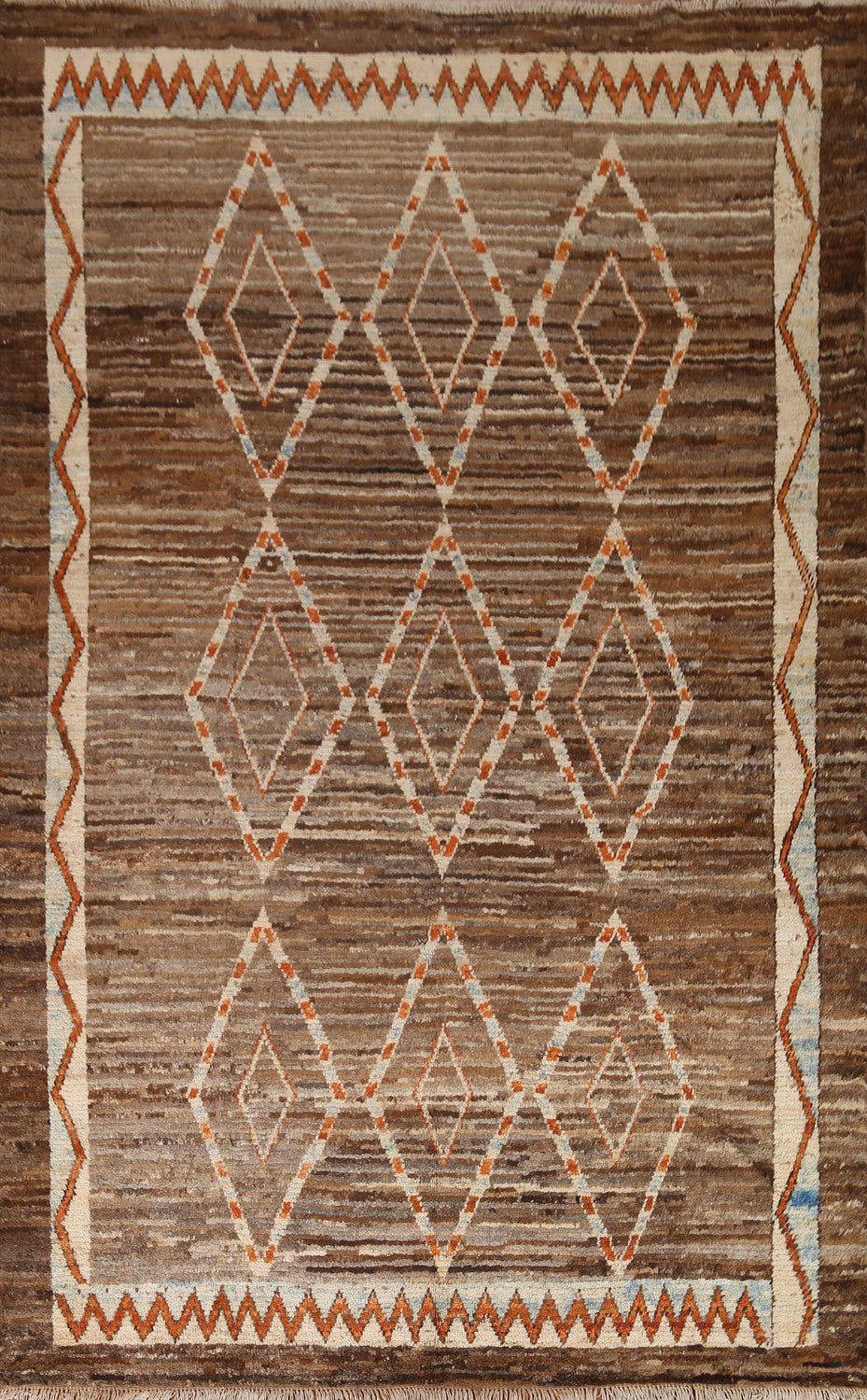 Brown Wool Moroccan Oriental Area Rug 6x9
