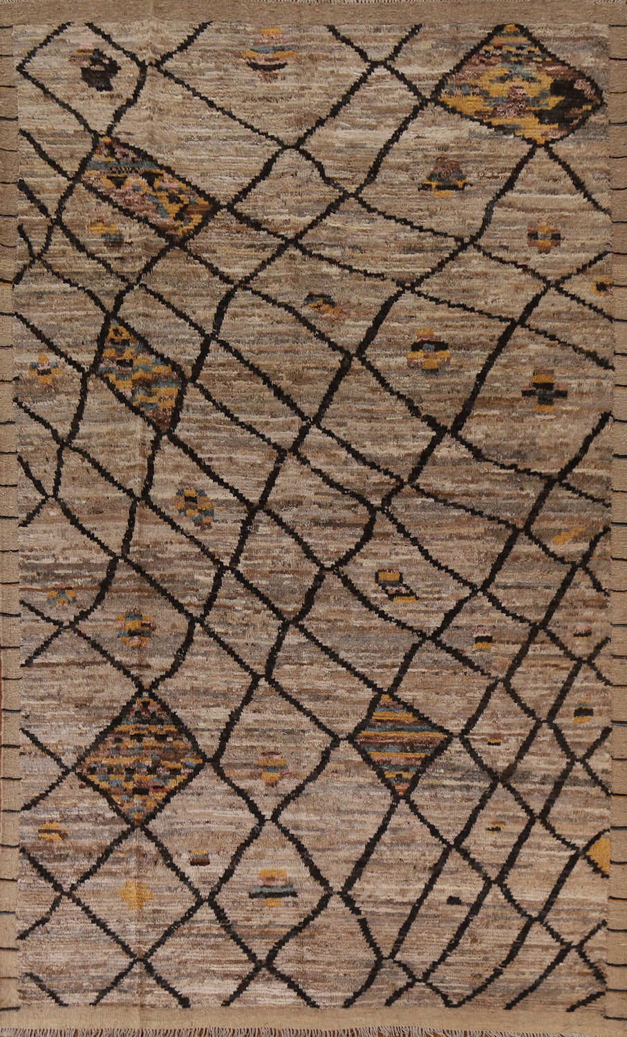 Brown Wool Moroccan Oriental Area Rug 6x8