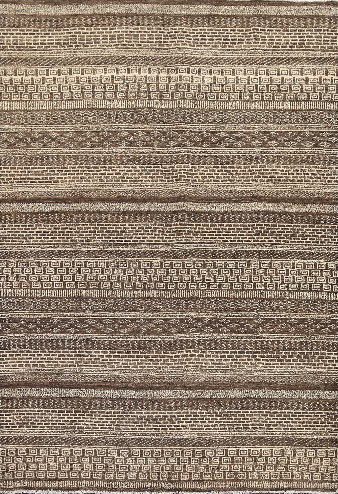 Brown Wool Geometric Nepalese Oriental Area Rug 5x8