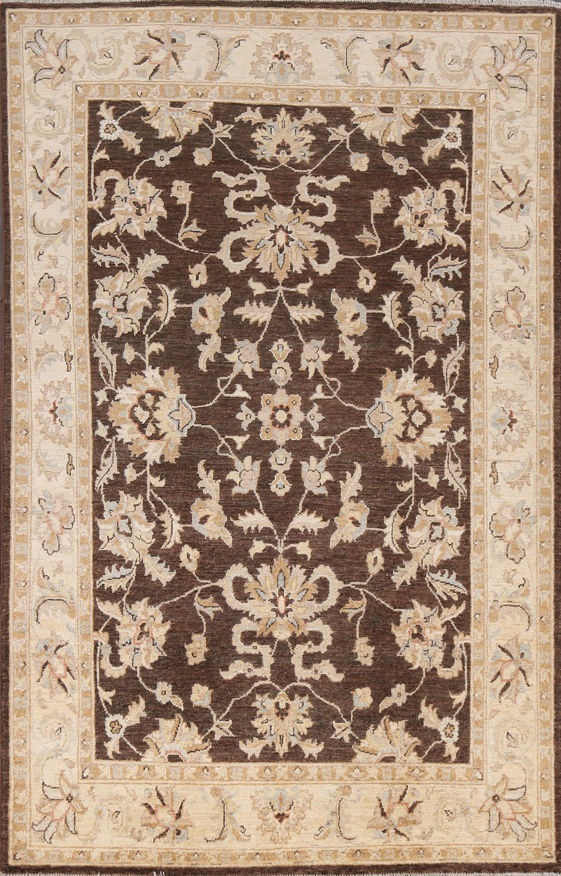 Vegetable Dye Brown Chobi Peshawar Handmade Wool Rug 3x5