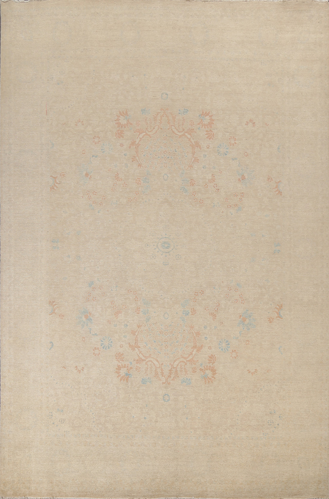 A Beautiful Genuine Pakistan Oushak-Chobi rug is Hand Knotted by skillful weavers in Pakistan with...