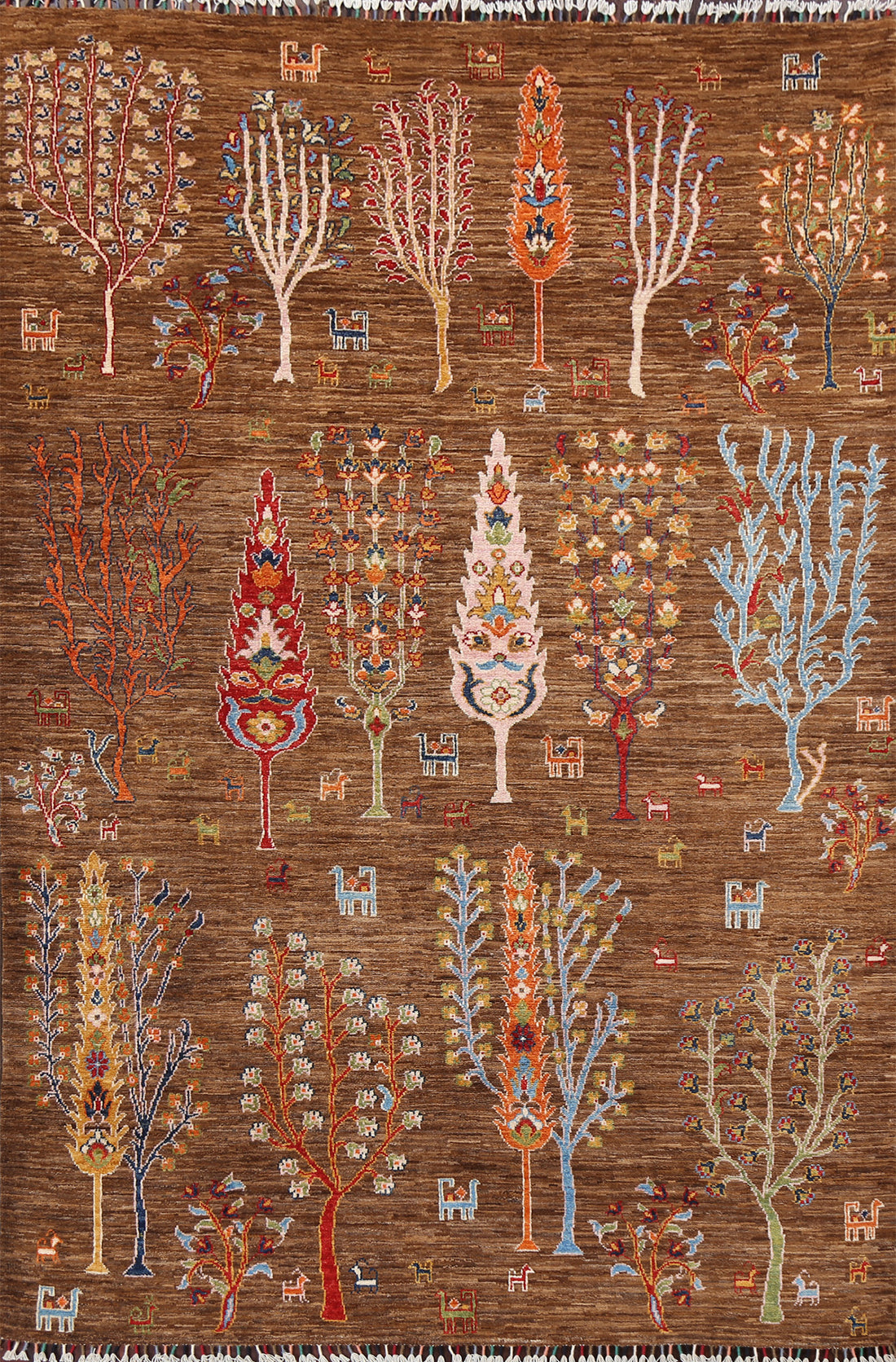 Earth-Tone Gabbeh Kashkoli Wool Area Rug 5x7