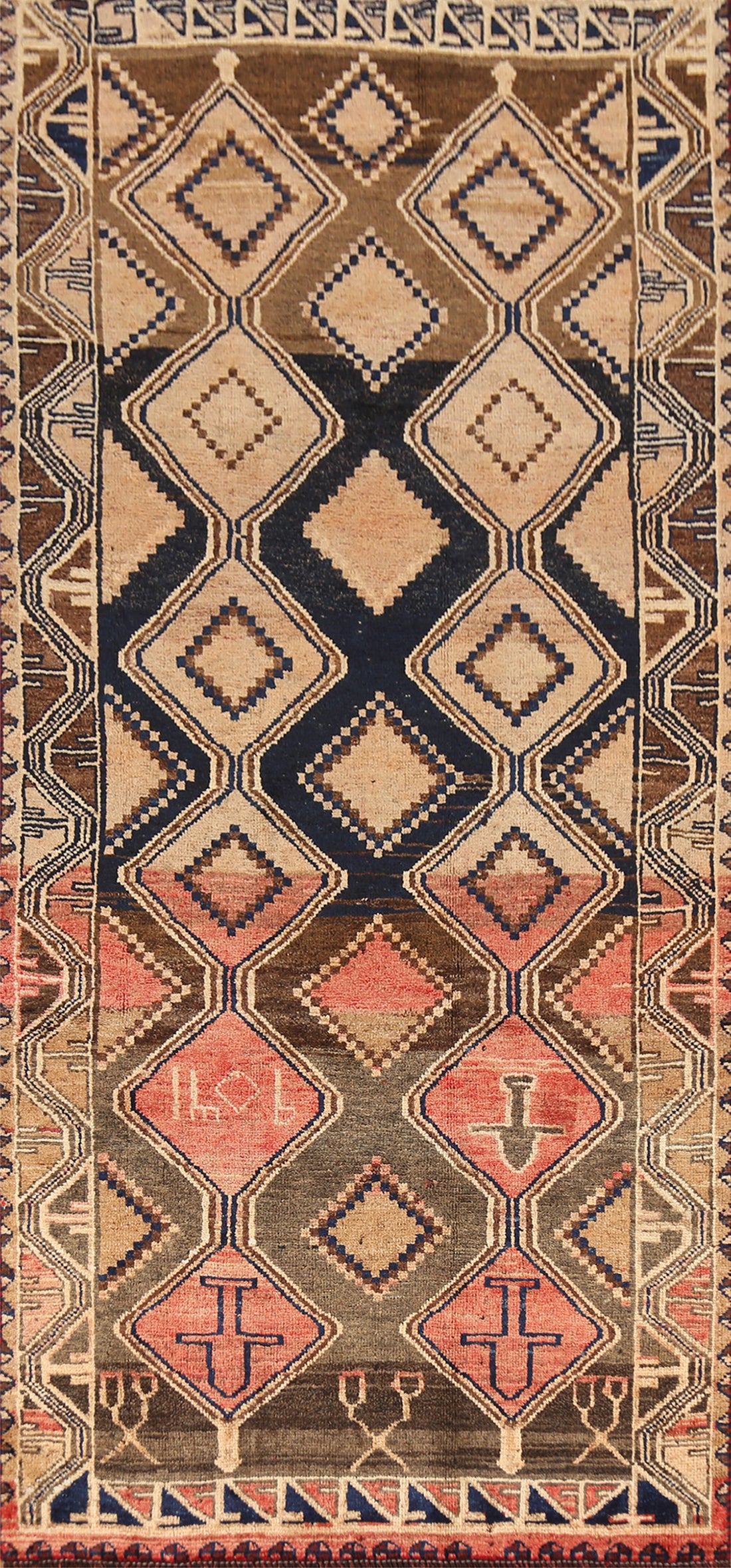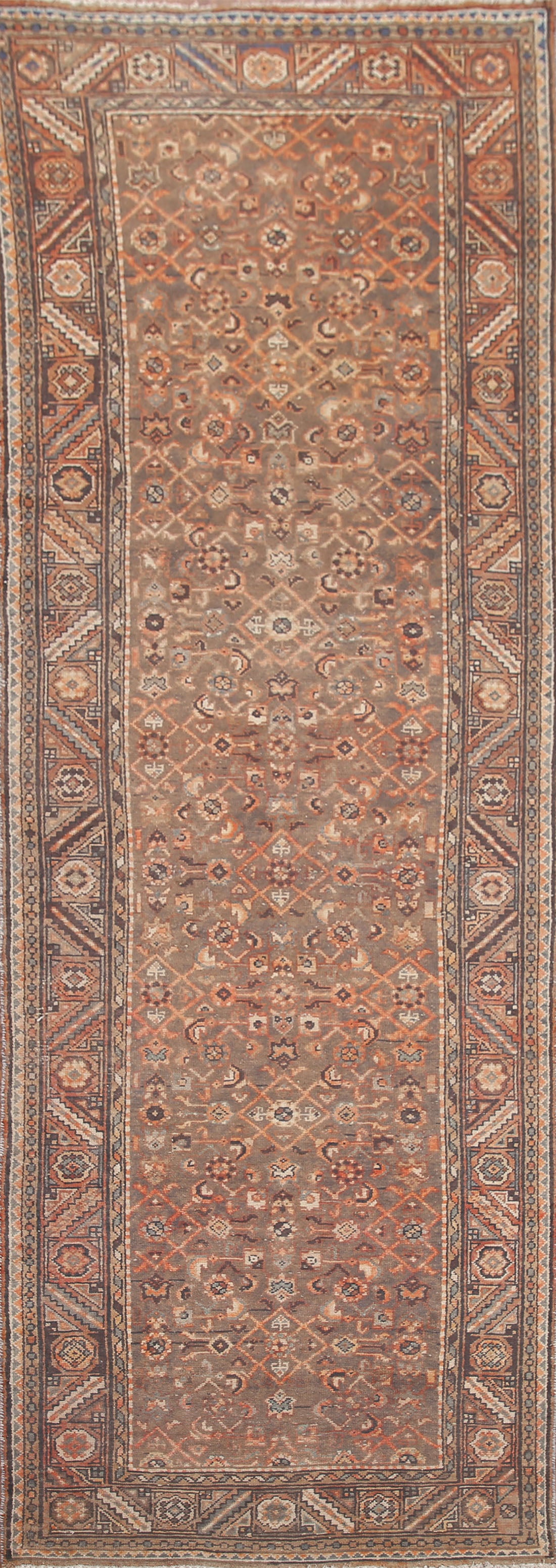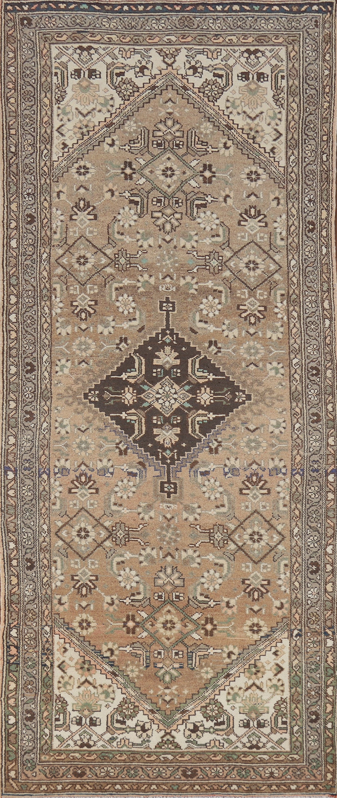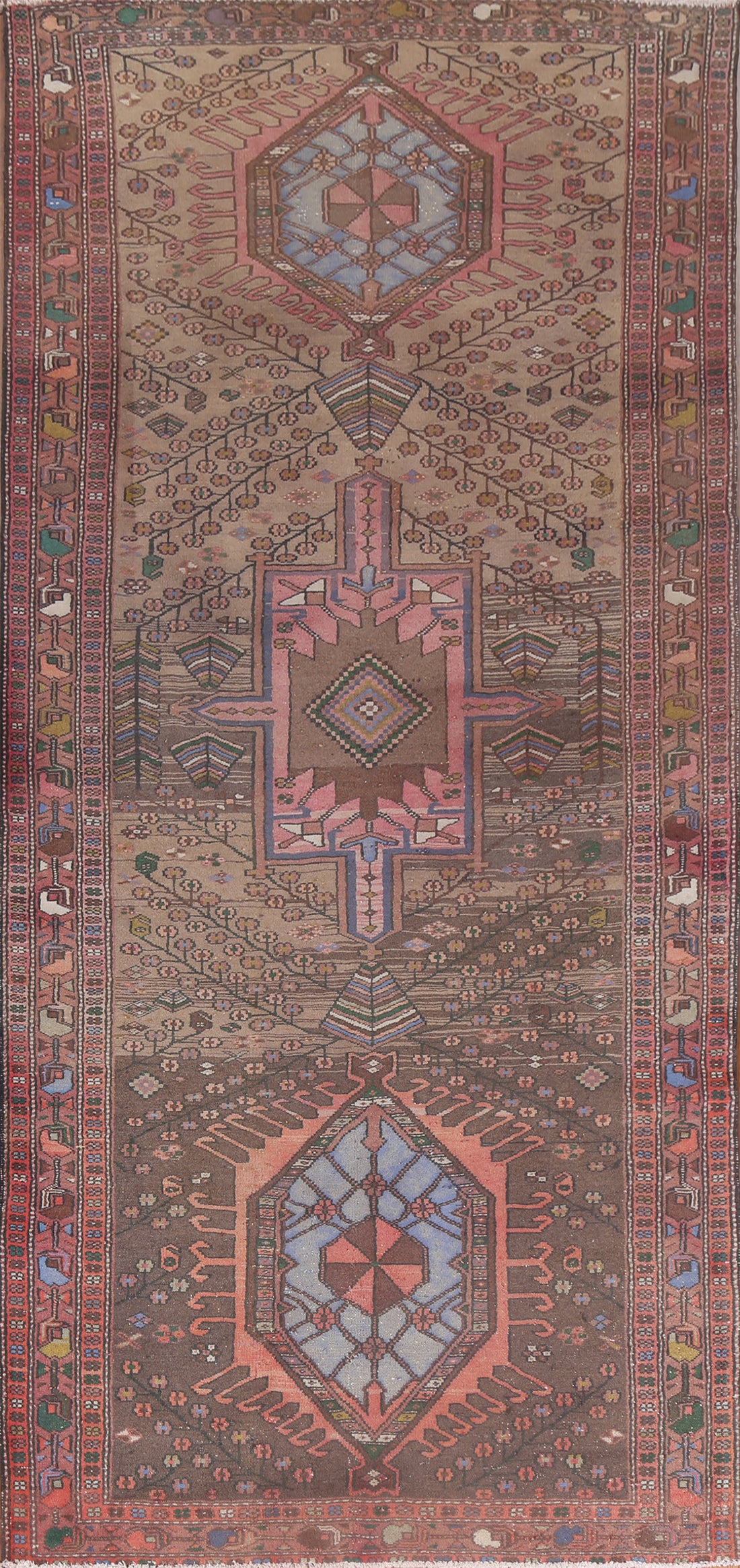 Brown Tribal Wool Hamedan Persian Runner Rug 4x10