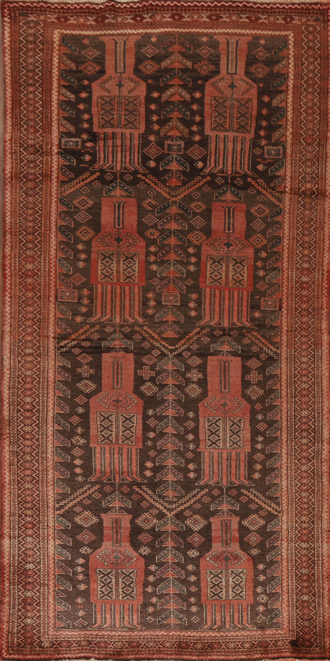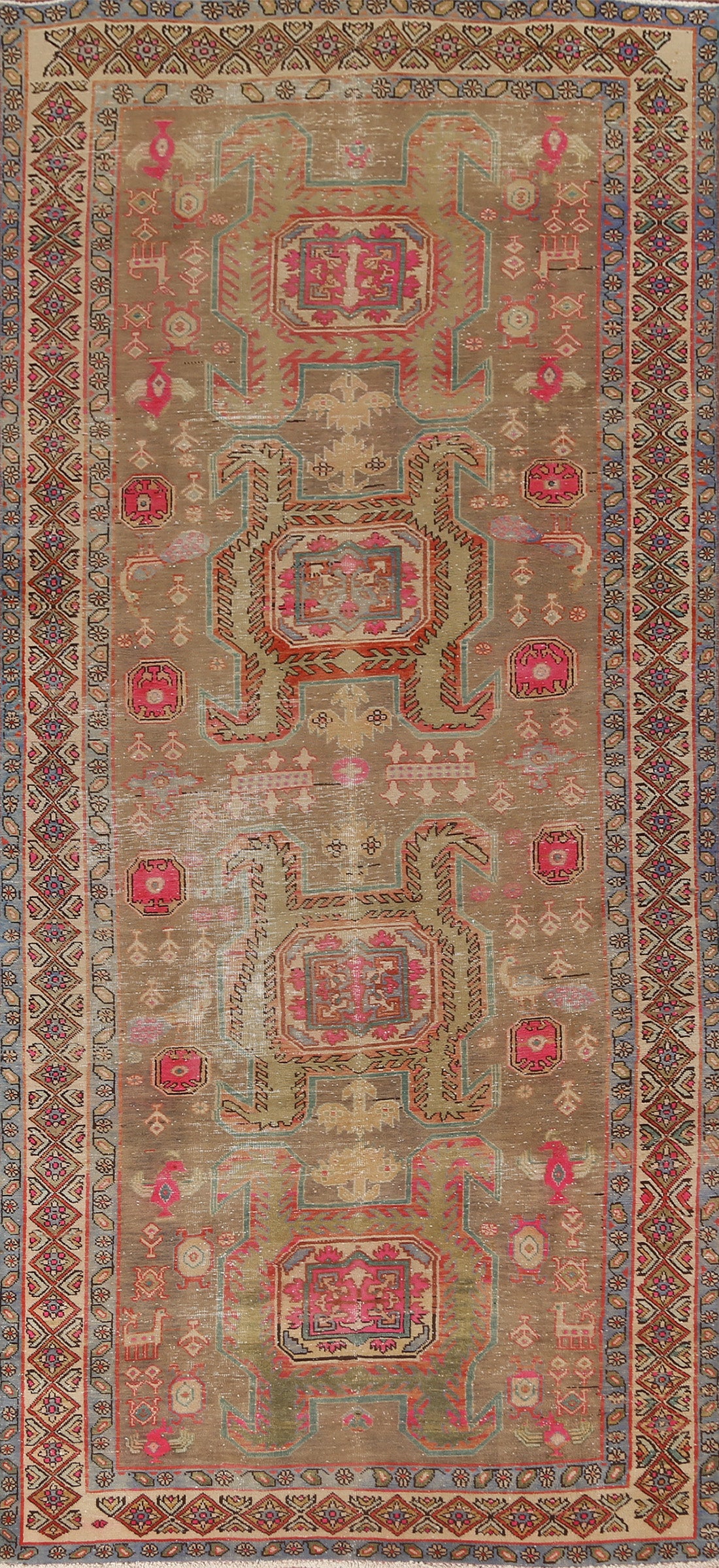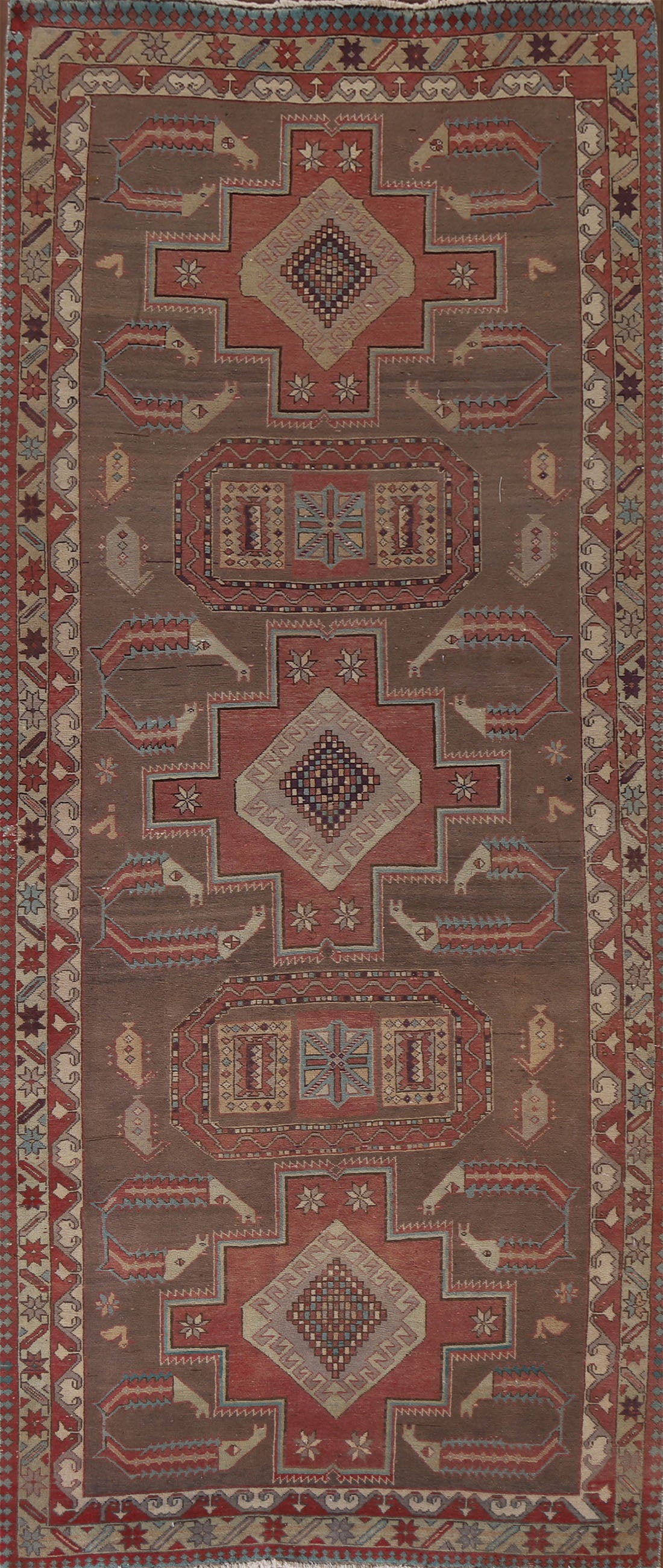 Tribal Brown Ardebil Persian Runner Rug 4x10