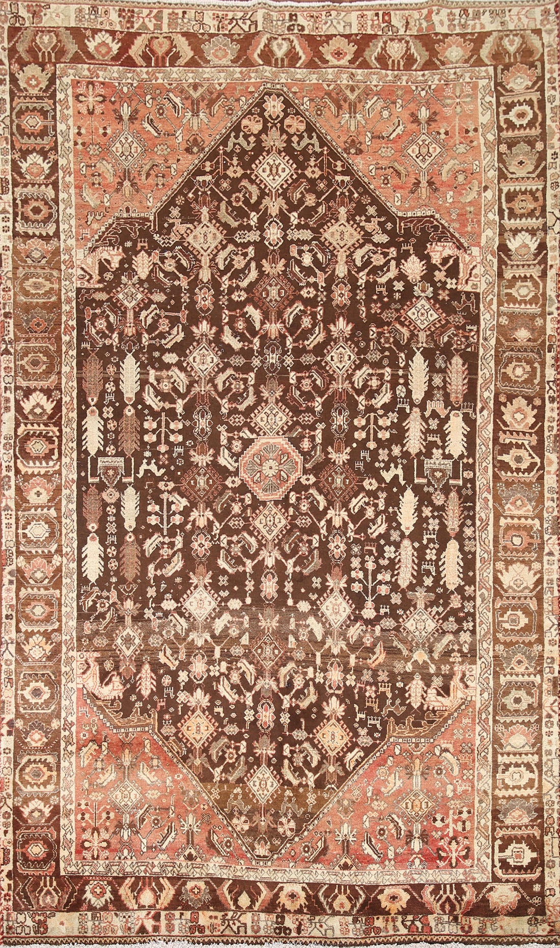 Brown & Orange Vintage Bakhtiari Persian Area Rug 5x9