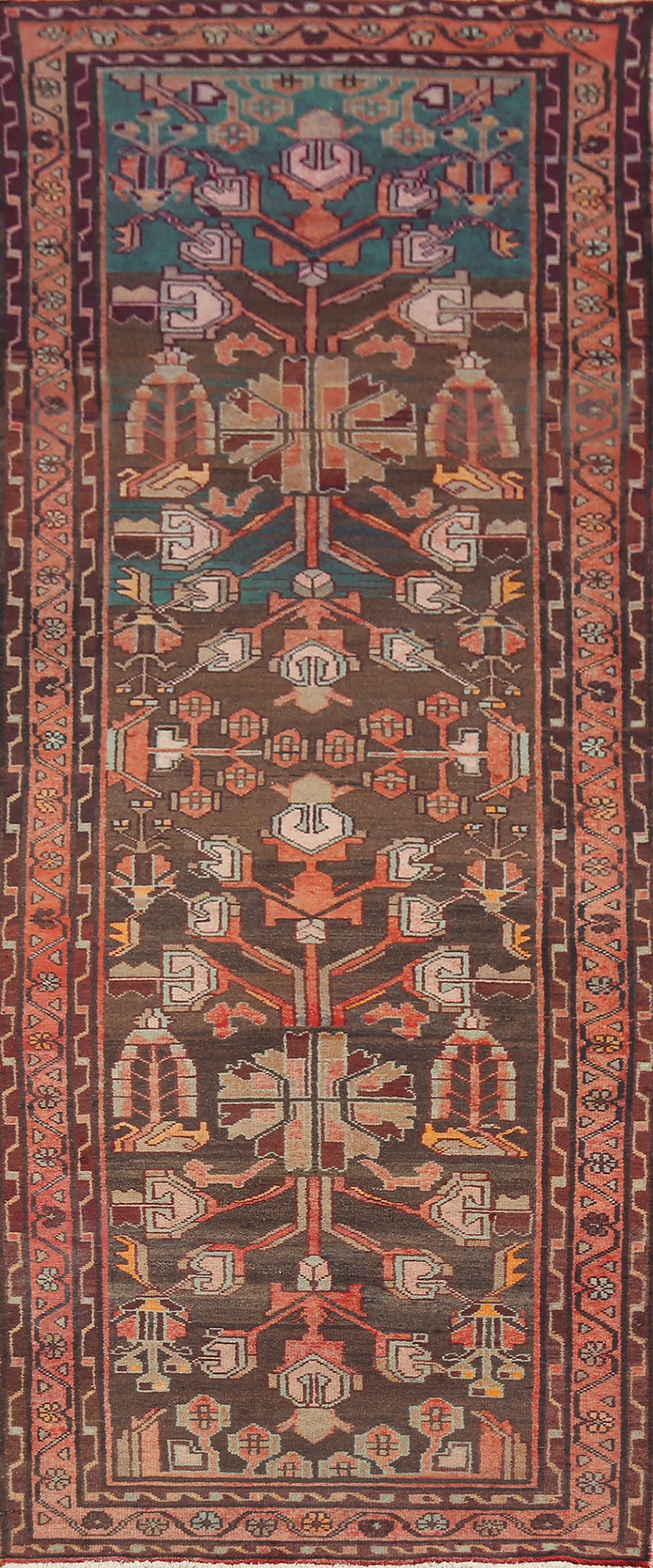 Geometric Hamedan Persian Runner Rug 4x9