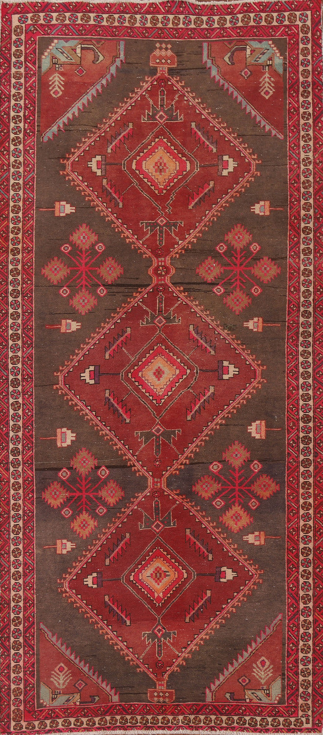 Vintage Wool Hamedan Persian Runner Rug 3x11