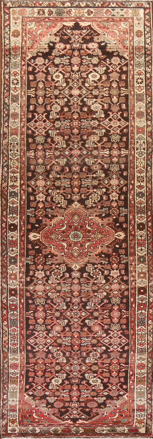 All-Over Wool Hamedan Persian Runner Rug 4x13