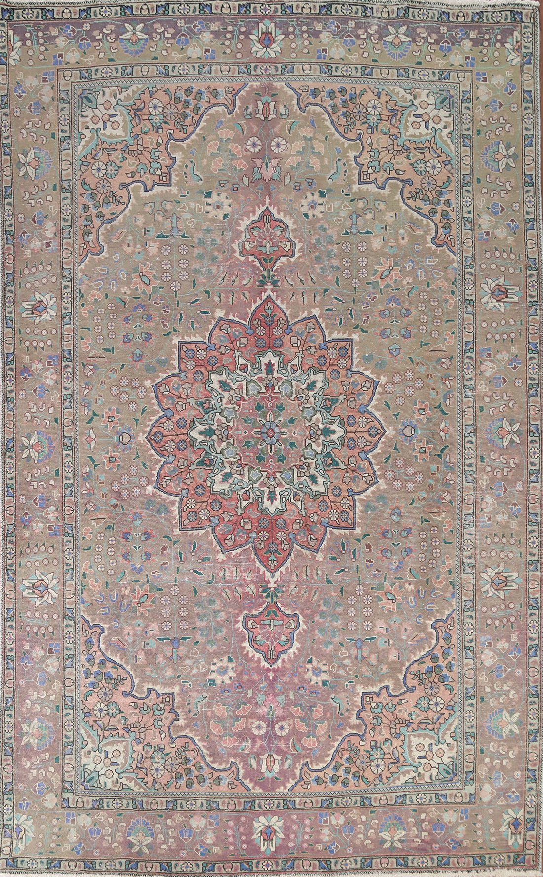 Vintage Brown Tabriz Persian Area Rug 8x12