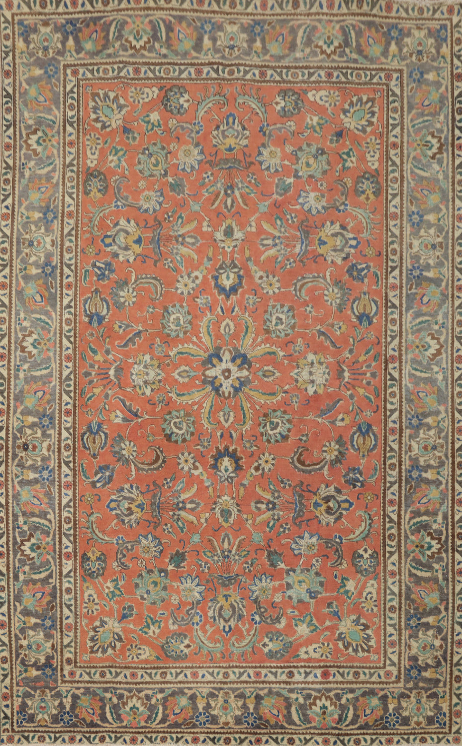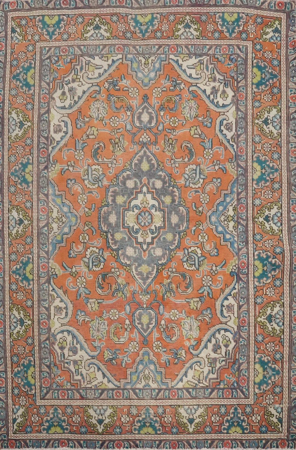 Handcrafted Wool Orange Tabriz Persian Area Rug 6x9