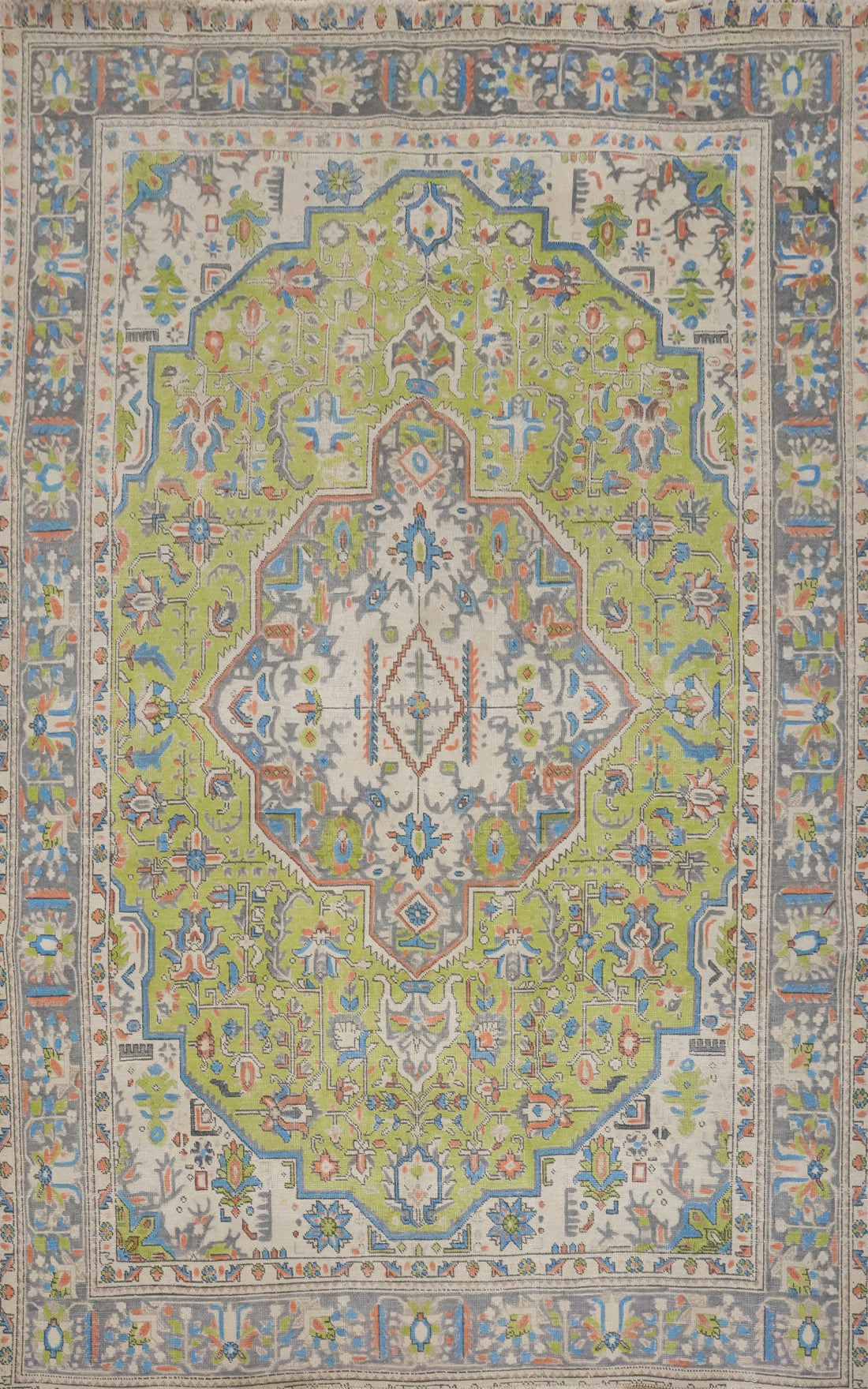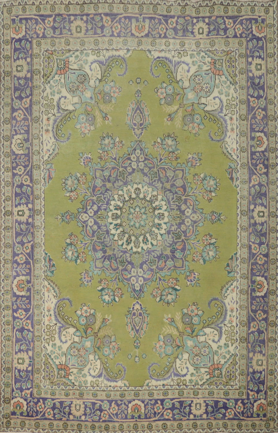 Light Green Handmade Tabriz Persian Area Rug 7x9