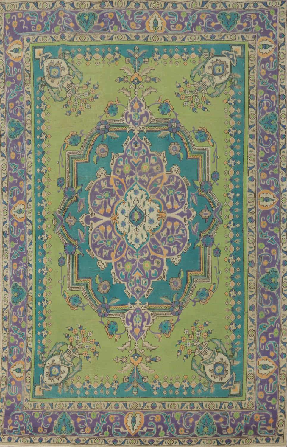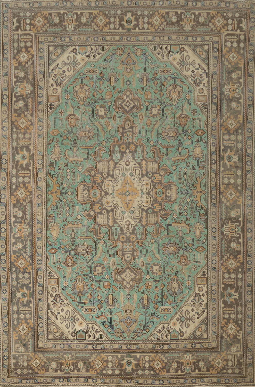 Turquoise Green Tabriz Persian Area Rug 7x10