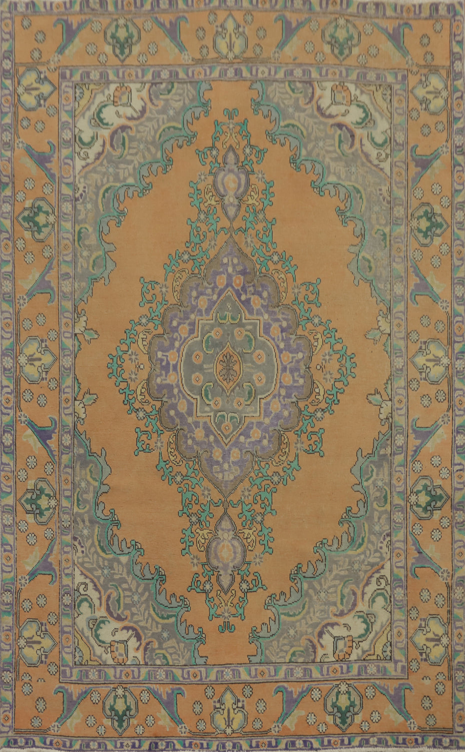 Traditional Orange Wool Tabriz Persian Rug 5x6