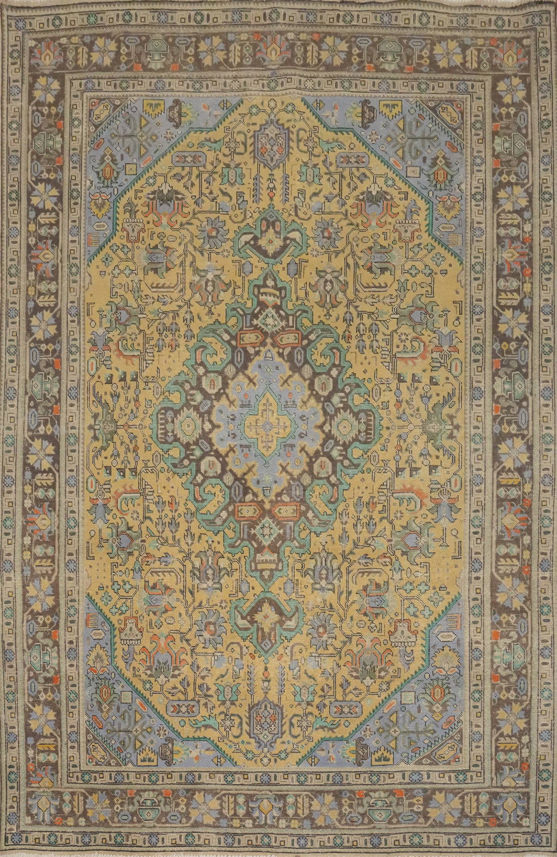 Vintage Wool Tabriz Persian Area Rug 6x9