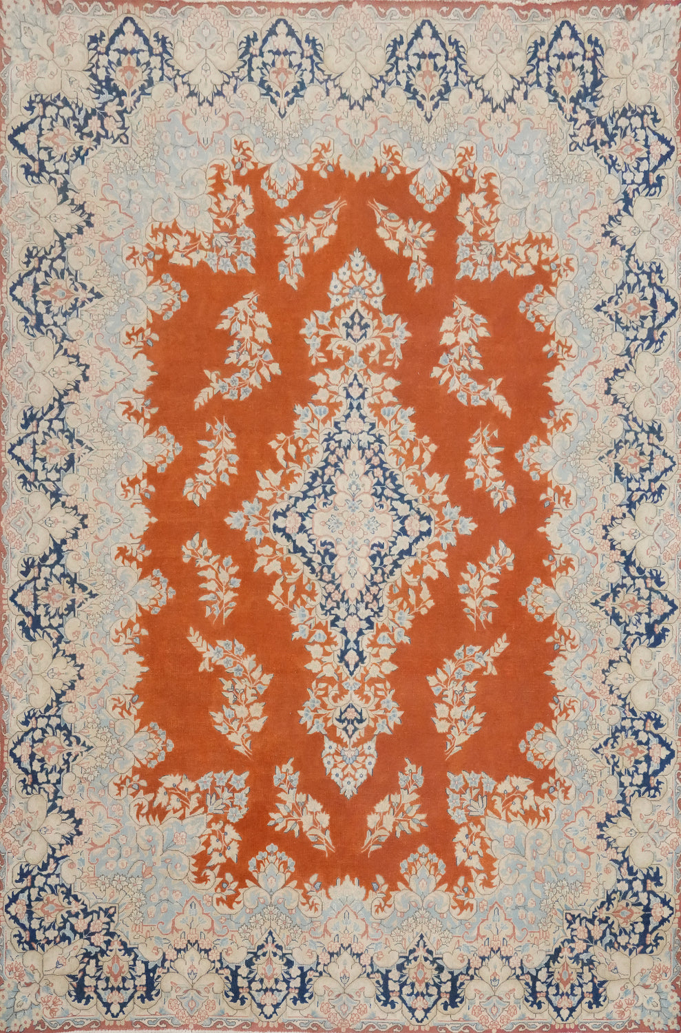 Orange Floral Wool Kerman Persian Area Rug 10x13