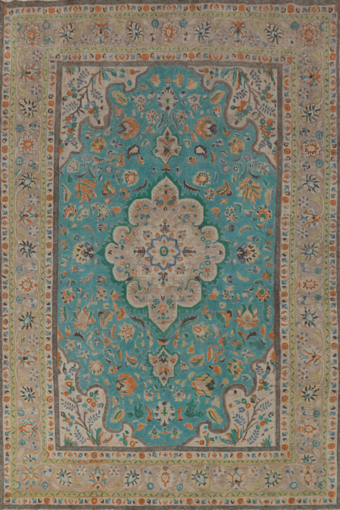 Antique Aqua Vegetable Dye Tabriz Persian Area Rug 8x11