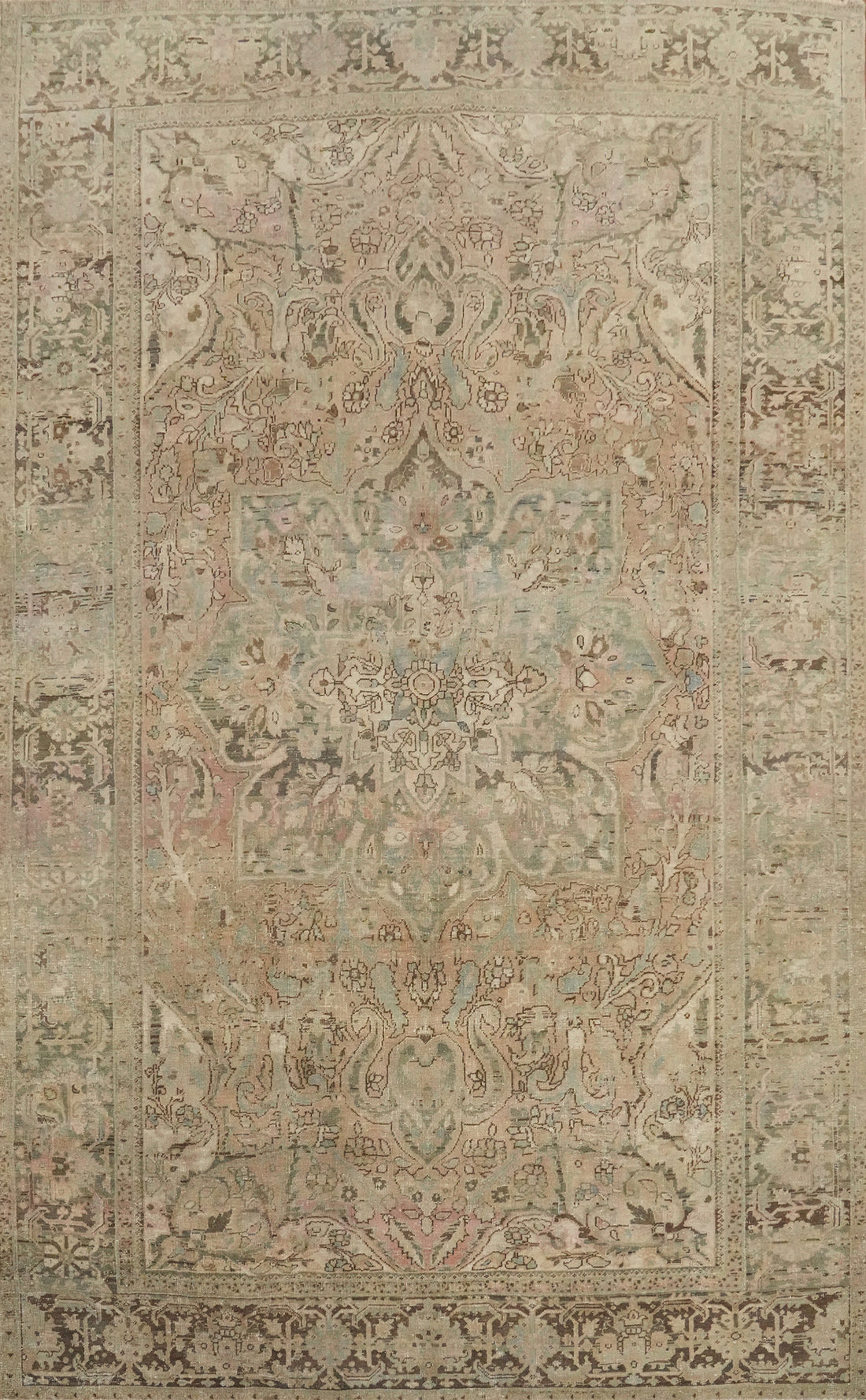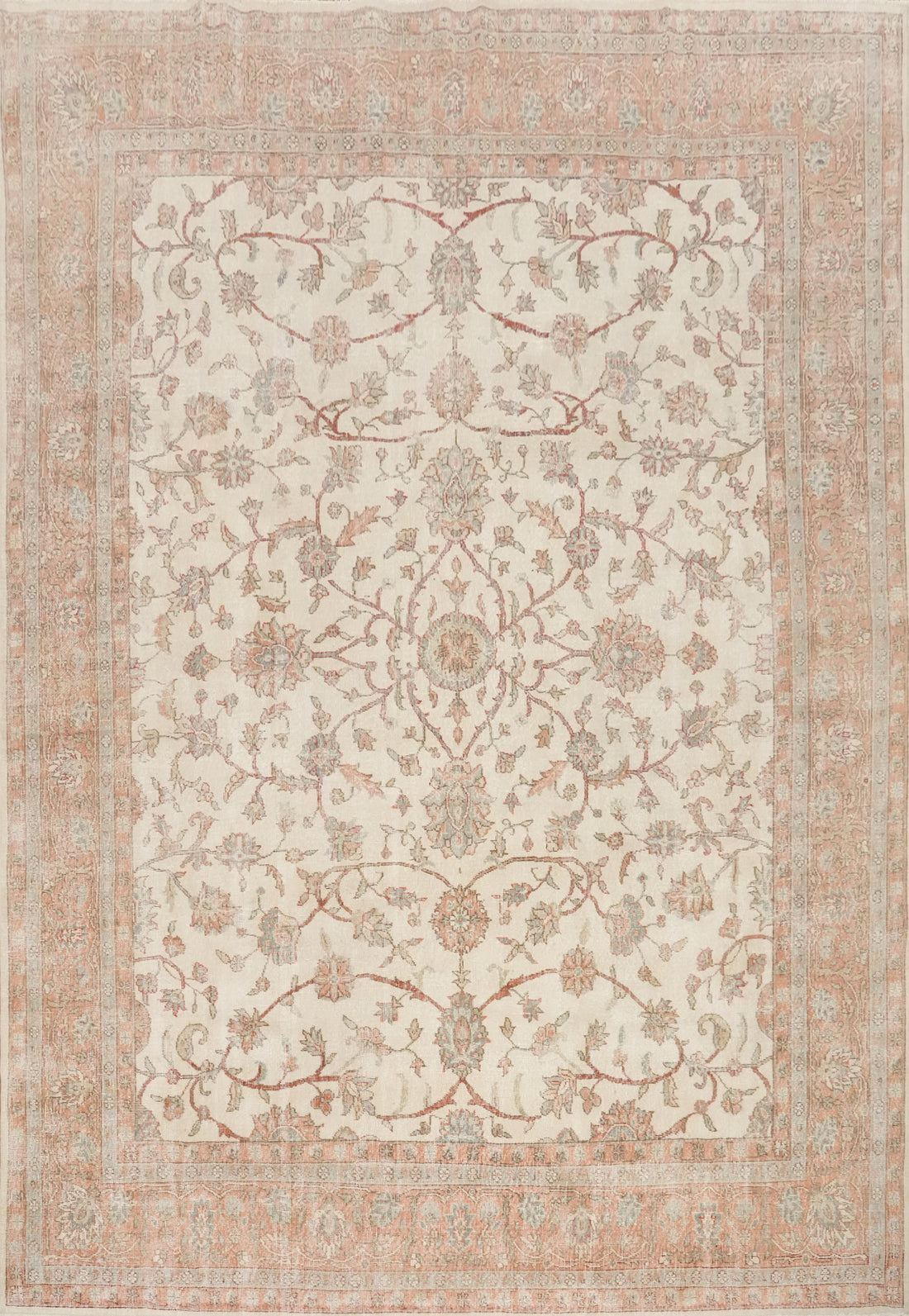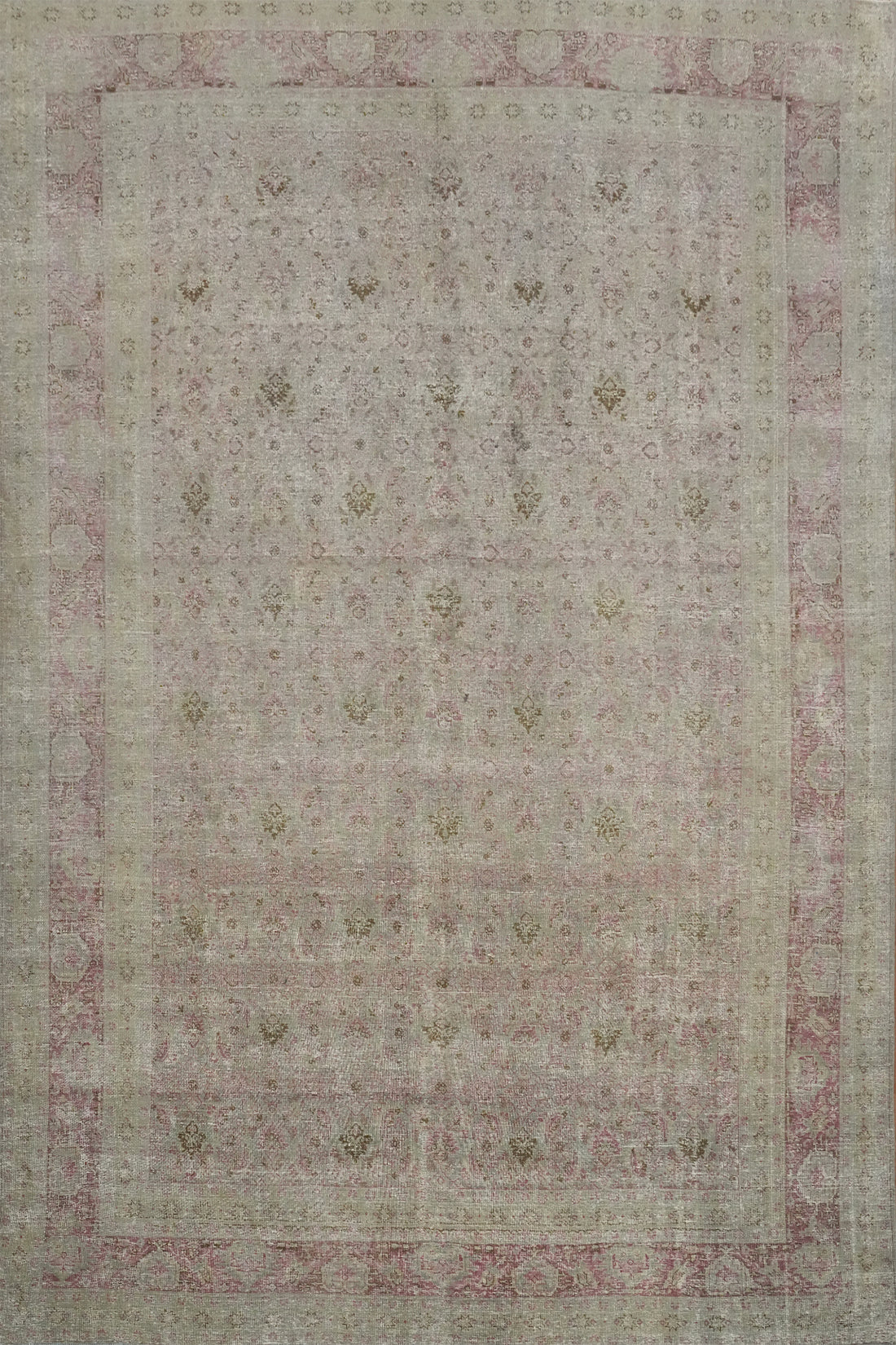 Distressed Wool Floral Tabriz Persian Large Rug 10x13