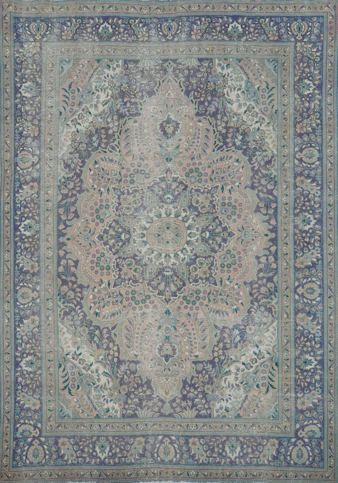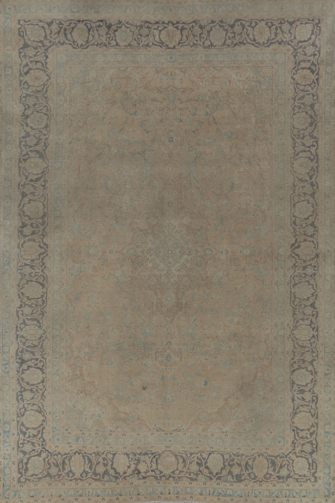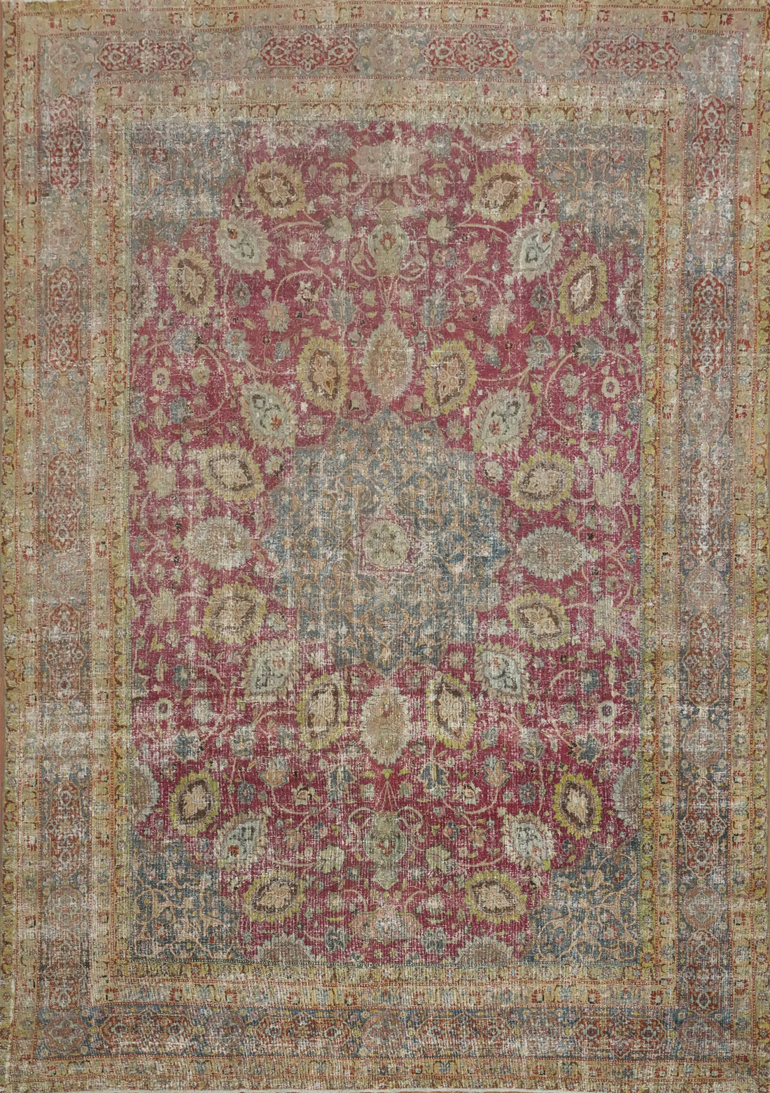 Distressed Wool Floral Tabriz Persian Large Rug 10x13