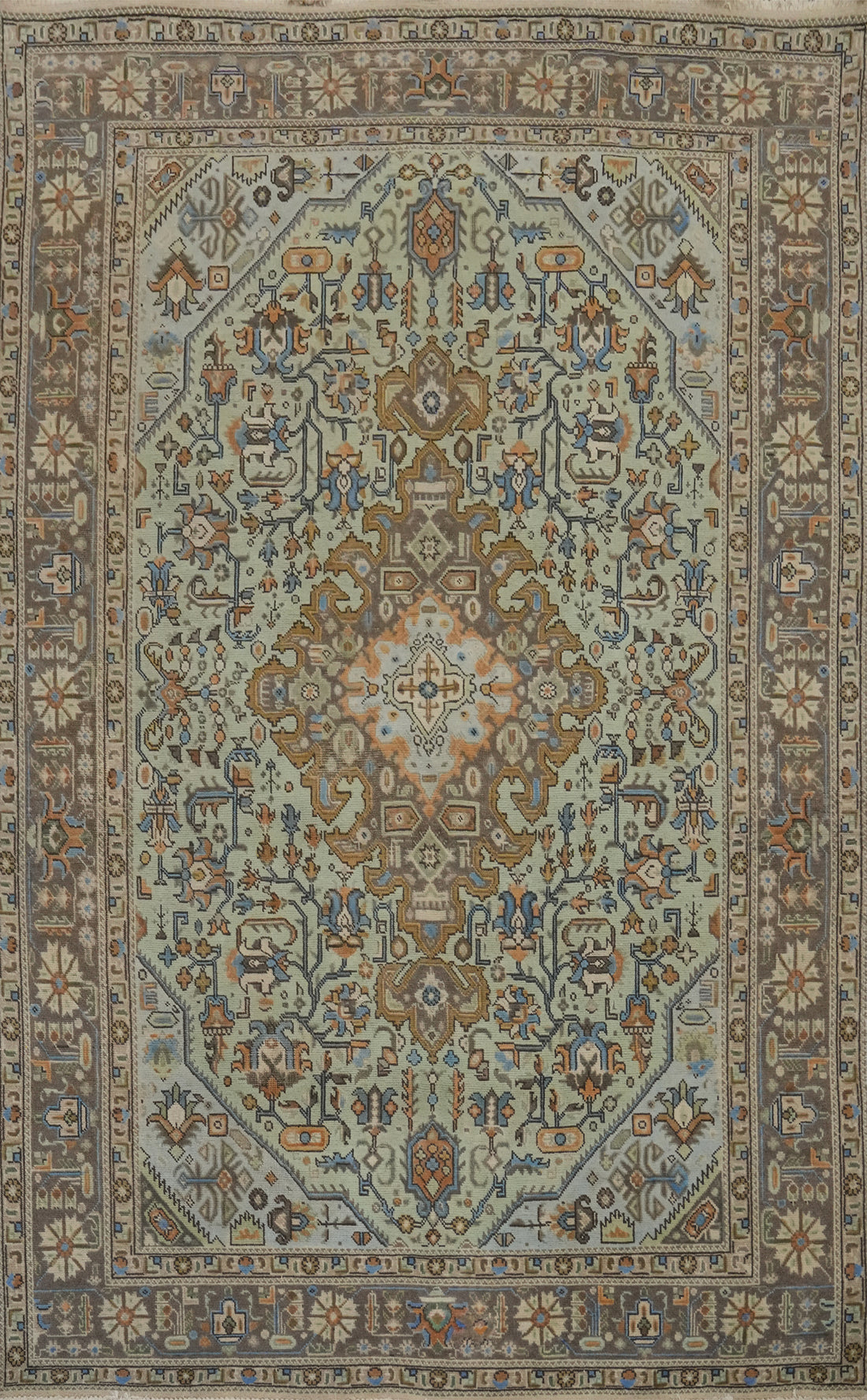 Mint Green Wool Tabriz Persian Area Rug 7x10