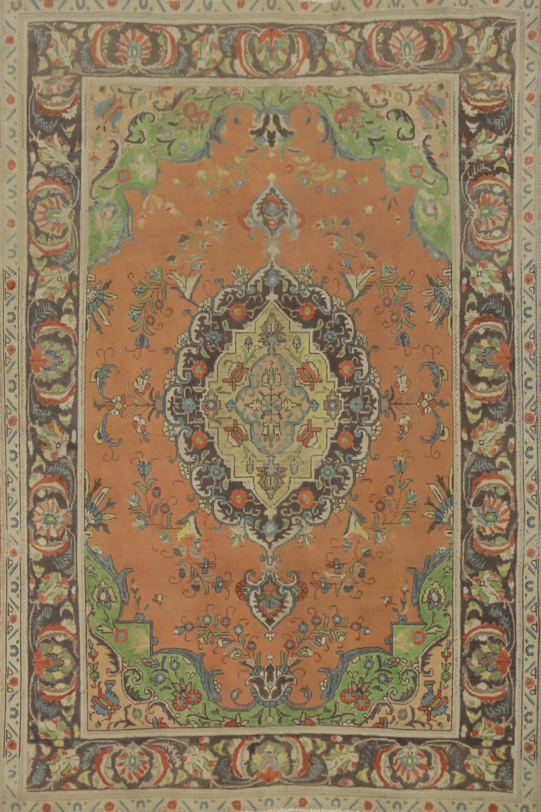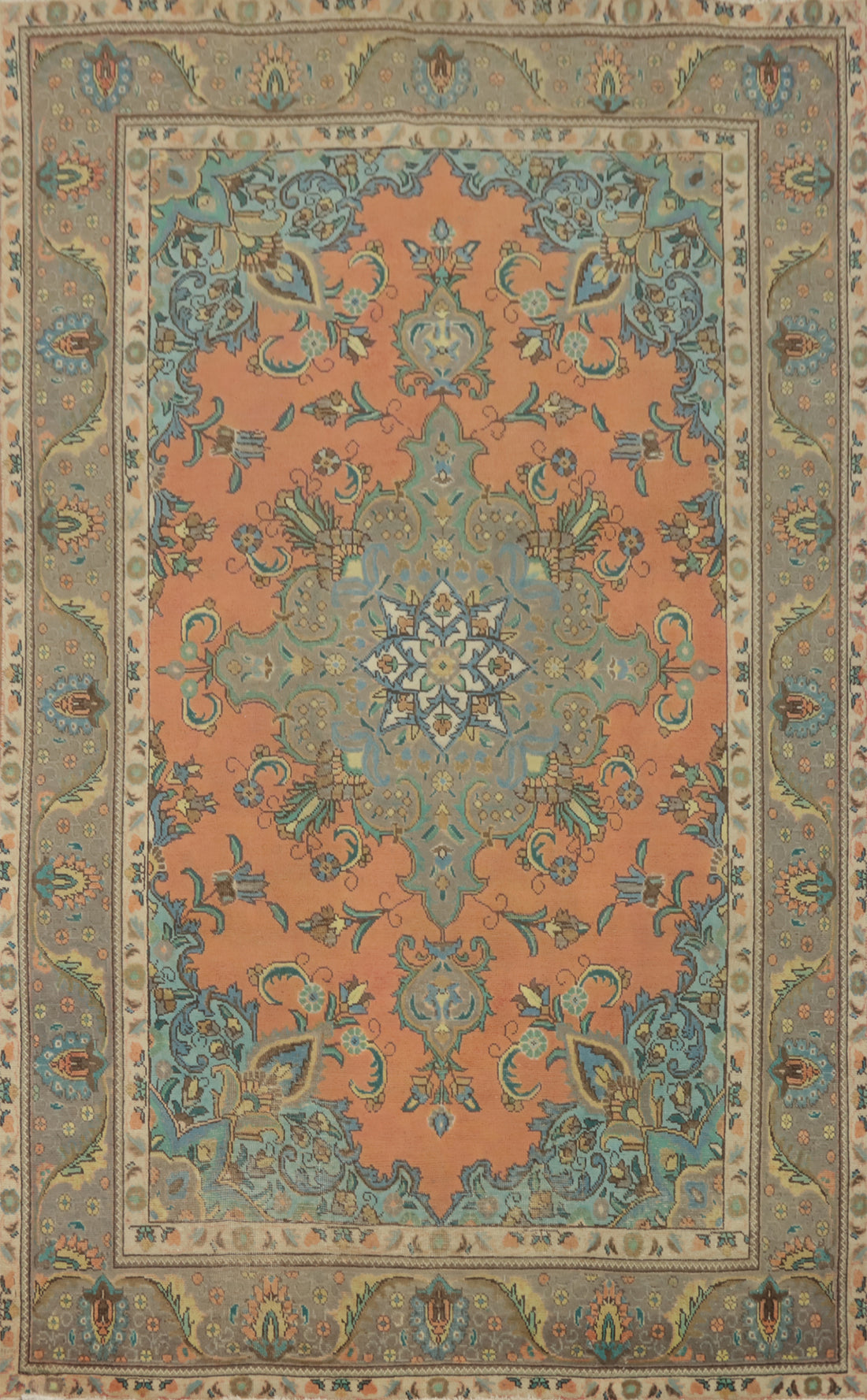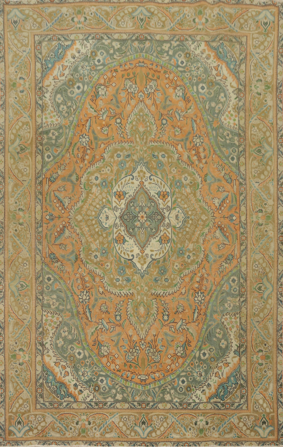 Traditional Orange & Green Tabriz Persian Rug 6x9 with Intricate Medallion