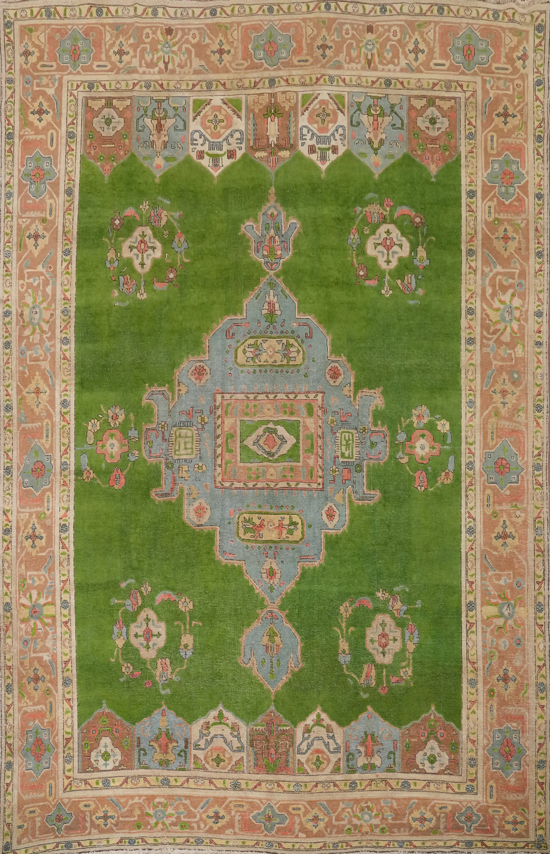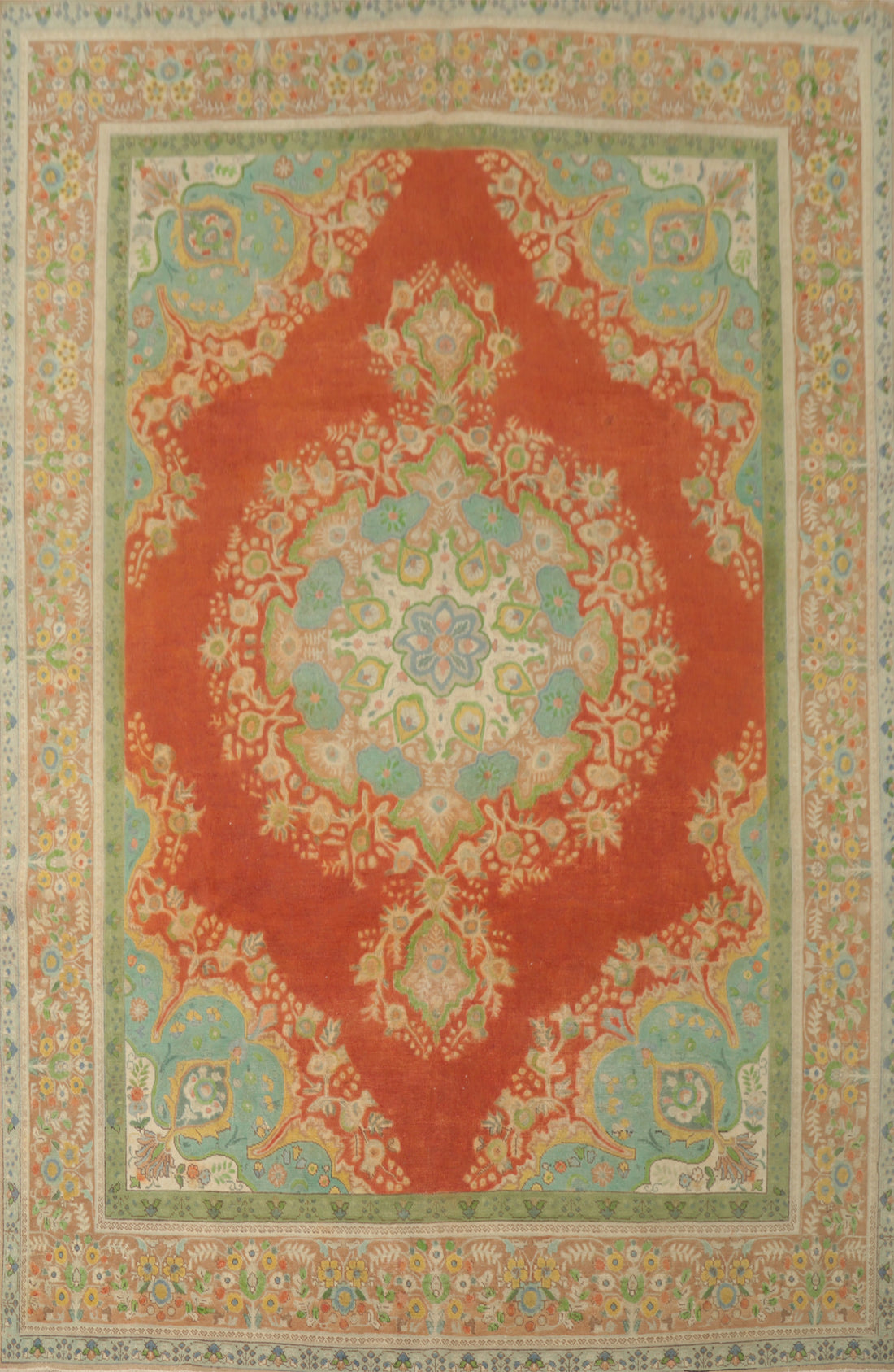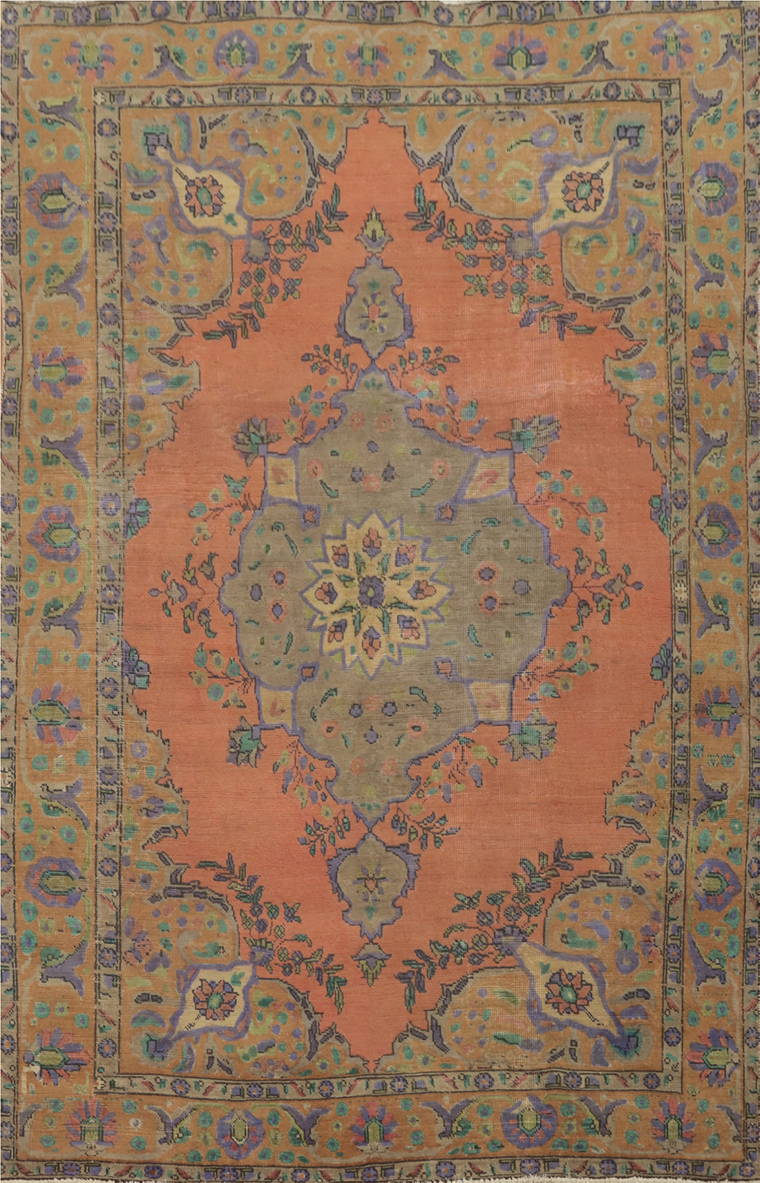 Traditional Orange & Green Tabriz Persian Rug 6x9 with Intricate Medallion