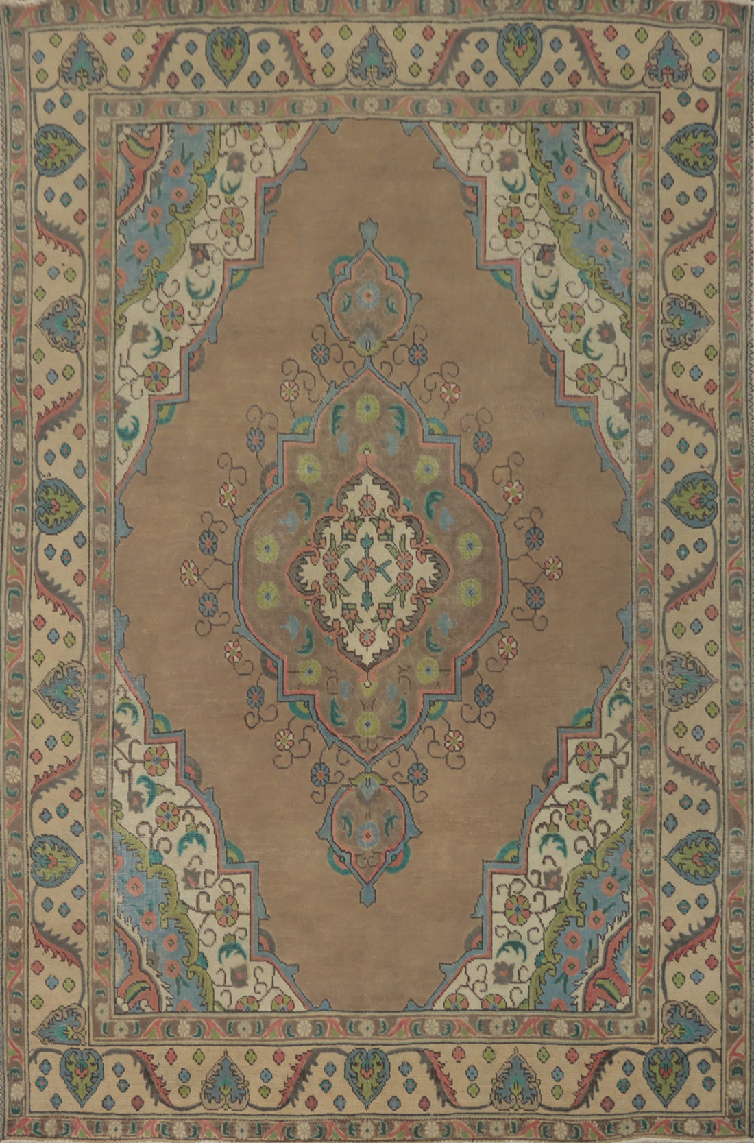Vintage Elegance Brown Tabriz Persian Area Rug 6x9