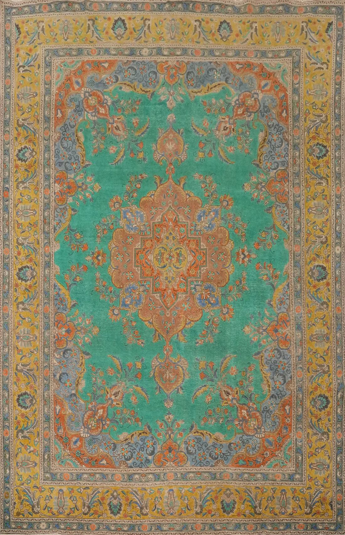 Vintage Wool Tabriz Persian Area Rug 9x12