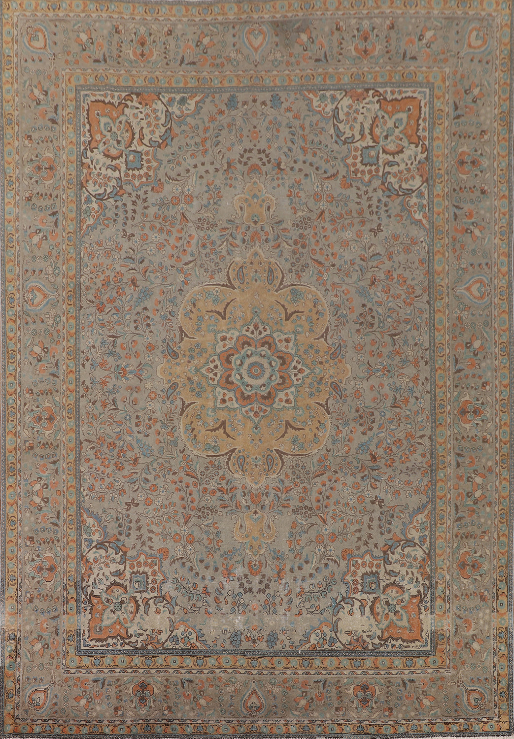 Distressed Muted Tabriz Persian Area Rug 10x13