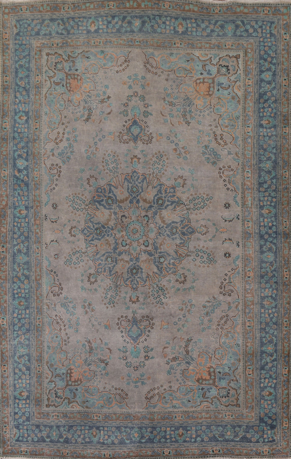 Distressed Wool Tabriz Persian Area Rug 9x13